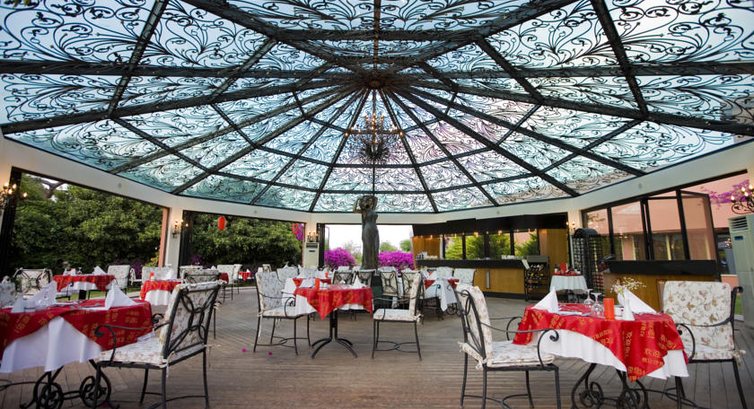 Бари та ресторани: головний ресторан розрахований на 700 осіб (критий, з кондиціонером, літня тераса, дитяче меню, дієтичне меню, дитячі стільці), лобі-бар (09:00-24:00), бар біля басейну (09:00- 18:00), бар на пляжі (10:00-18:00), диско-бар (23:00-02:00), турецьке кафе (10:00-24:00). 4 ресторани A la Carte: китайський, італійський, турецький, рибний - відвідування кожного з ресторанів безкоштовно 1 раз на тиждень, за попередньою резервацією.