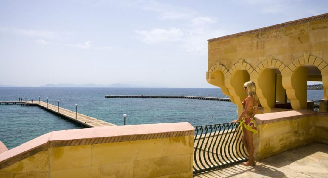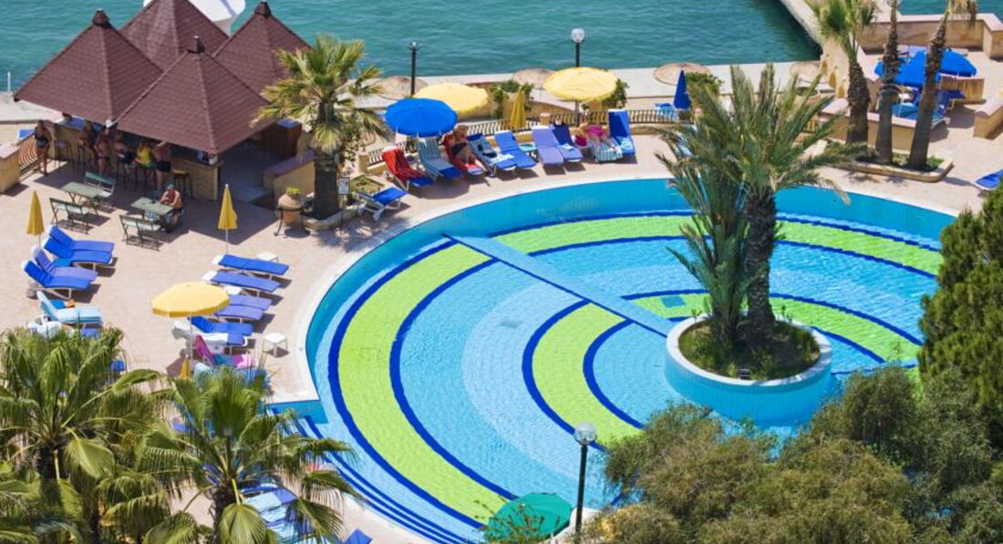 Море и пляж. Люди, с маленькими детьми ехать сюда не стоит! Спуск в море по лестнице, совершенно неудобно и опасно. я наблюдала. как родители малыша спускали, чуть сердце не оборвалось-одно неверное движение и ....(((( А в бассейне купаться, имея под носом море, согласитесь, обидно. Само море оставило осадок в наших душах. Очень много травы, т.е водорослей. Они растут на дне и естественно плавают вместе с нами на поверхности, очень неприятно. Один день вообще не хотелось туда лезть, вся поверхность была в водорослях. я не понимаю, почему не пройтись с сачком и не почистить?????? Сам пляж насыпной. Берега нет. лежали занимали с утра. В основном у моря русские(их кстати много) и молодые . Все иностранцы у бассейна. Пляжные полотенца дают сколько хочешь!