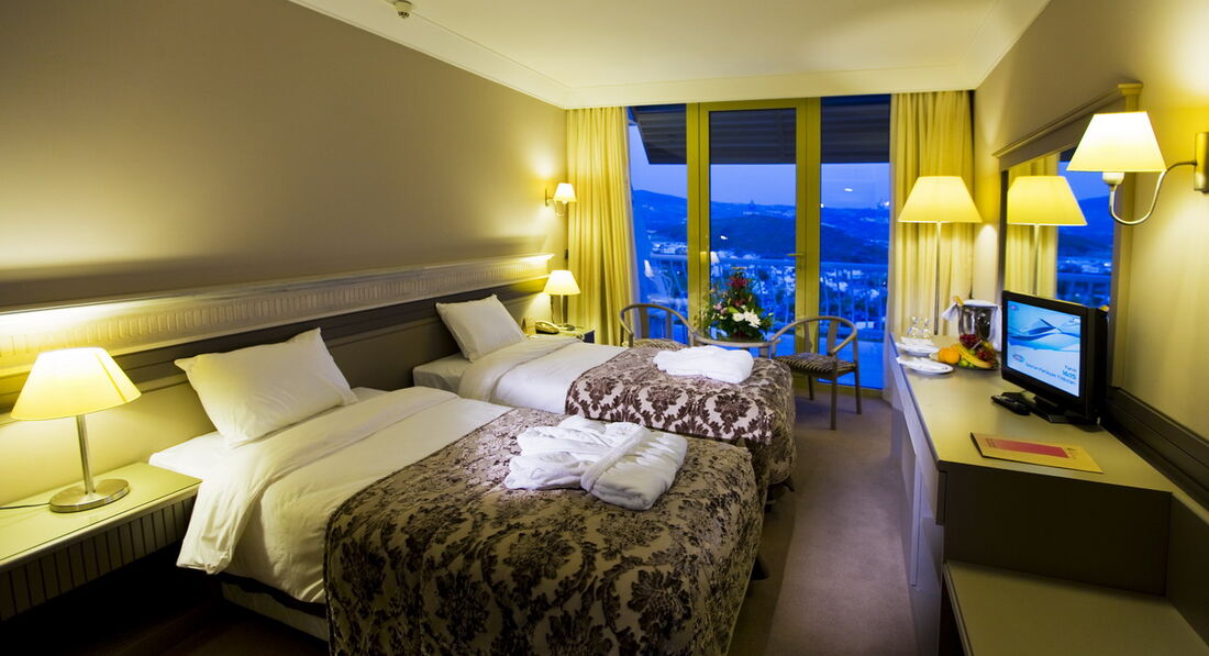Привет. Сразу говорю - отель понравился и рекомендую его!Немного впечатлений - приехали в отель утром, думали будем ждать номер, однако оперативность нас немного удивила. 2-3 минуты номер был готов (может благодаря ТопХотел, тут нам помог представитель отеля). Сразу обозначу проблему - отель на 70 % состоит без балконов и только 10 % окон выходит на море. Так что рассчитывайте свои силы и возможности на данные привилегии. Номера все просторные - можно мячик погонят, уютные, все есть (фен, полотенца, халаты, белые тапочки и др.), тот же мини-бар пополняется каждый день.