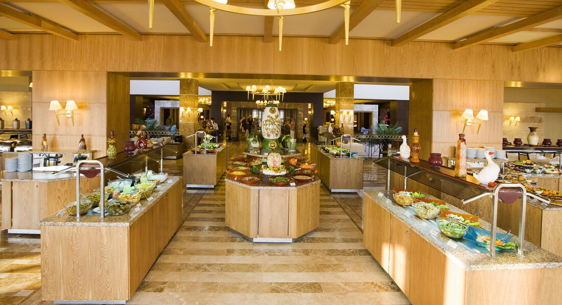 Ресторан. Очень порадовало отсутствие очередей. Все спокойно. Еда приличная. Никогда не голодали. огромный выбор десертов и фруктов- черешня, абрикосы, персики, арбузы, дыни, яблоки. груши, апельсины. Горячих блюд тоже немало, но на любителя. Очень уж любят поперчить тамошние повара! Для детей маленьких совсем нет никакого выбора, с этим беда. Я разговаривала с туристами, они приехали с дитем, и очень расстроены. Мальчик ел только картофель фри и блины на полдник. (между обедом и ужином). Вегетарианских блюд тоже не в изобилии. Ходили в рыбный р-н, ничего особенного. Лучше вместе со всеми. Каждый день на ужин готовили что-нибудь на гриле. В последний наш ужин готовили суши(может потому что японцы приехали?))) К питанию претензий нет.Спиртное в любом количестве, официанты обслуживают на равных всех. Вино приличное, из бутылок.