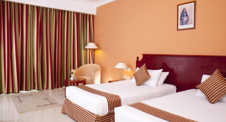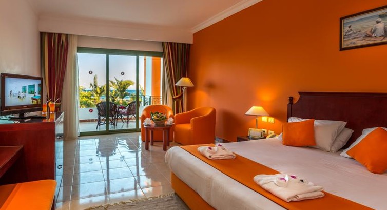При заселении на рецепшен дали 20 дол, попросили и получили с видом на море. Номер нормальный, проблемы обычные для отелей, плохо уходит вода, неправильно смонтирован слив у унитаза поэтому запах в санузле, муравьи. Всё это не стоит большого внимания. Номер просторный, три кровати, лоджия-террраса, очень большие зеркала, сейф, холодильник, каждый день ставят 1,5 бутылку питьевой воды. Как обычно, все приветливы, убирают номер, делают из покрывал лебедей и проч, улыбаются получают чаевые. Питание 4- или даже 3, изобилия и разнообразия нет, но конечно голодными не были, в ресторане все приветливы резервируют столики, официанты улыбаются приносят пиво и обеспечивают прочее обслуживание. Официанты набираются их ближайших городков и деревень работают вахтой по 7 дней, надо отдать должное ребятам - работают хорошо, стараются. Мы конечно выучили основные фразы по арабски и не забывали про бакшиш.