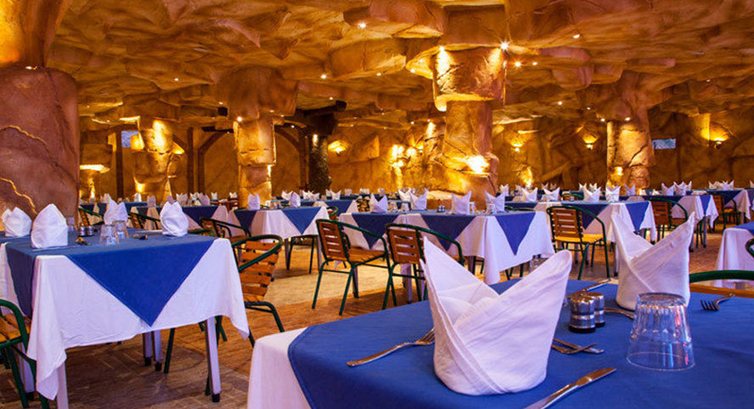 Fantasia restaurant: шведський стіл: сніданок з 07:00-10:00, обід з 13:00-15:00, вечеря з 19:30-22:00. Gazebo restaurant: з 12:30-14:00 пропонуються сендвічі та піца. Palm Beach Bar & Restaurant: обід з 13:00-15:00. За системою "все включено" пропонуються напої місцевого виробництва: на сніданок - сік (концентрований), кава, чай, гарячий шоколад; на обід та вечерю – безалкогольні напої, фільтрована кава, чай, пиво, вино, алкогольні напої. Лобі-бар: годинник роботи з 10:00-00:00. Бар біля басейну: відкритий з 10:00 до заходу сонця. Lagoon: бар на пляжі, години роботи з 10:00 до заходу сонця. Gazebo Bar: години роботи з 10:00-00:00, морозиво (платно), по системі "все включено" з 10:30-12:30 пропонуються випічка та холодні сендвічі, з 16:30-17:30 легкі закуски та солодощі. Pavarotti (платно): коктейль-бар. Palm Beach (платно): бар та ресторан. Le Mirage: диско-бар. Bedouin Tent (платно): кальян, кава, чай, безалкогольні напої, місцеве пиво.