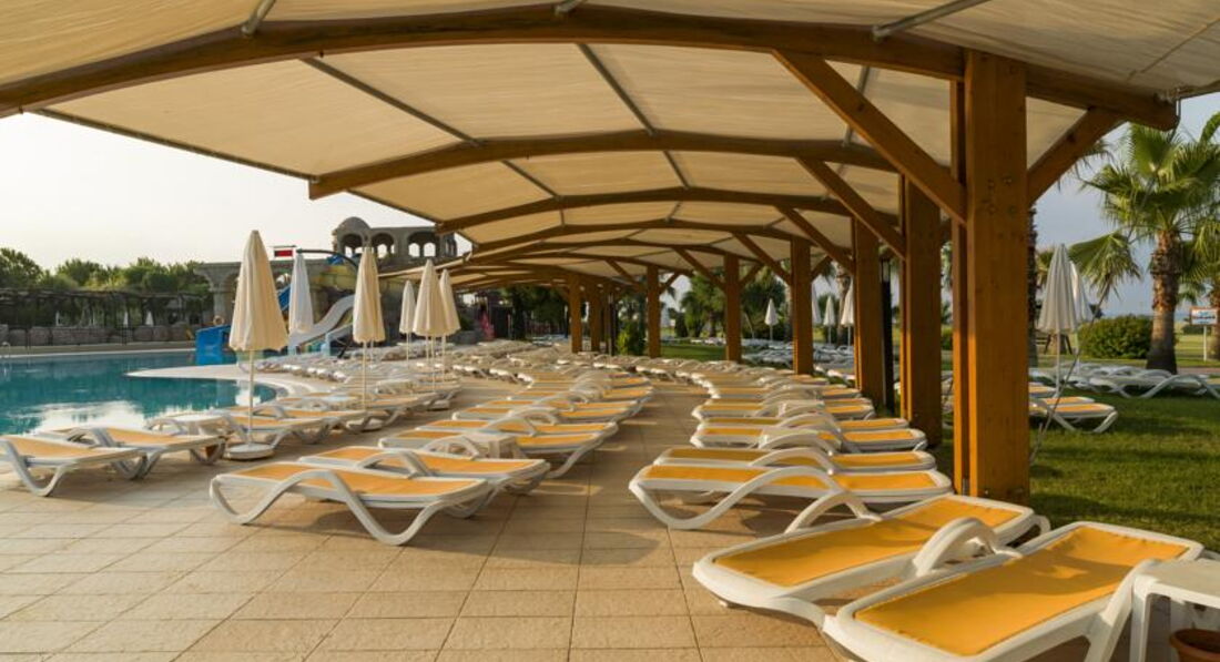 Данный отель рассчитан только на турецких и немецких гостей. Анимация на русском или украинском отсутствует вообще. Номера хорошие большие чистые, нас как впервые, посетивших отель, поселили в самую последнюю виллу (минус рядом дорога и трансформаторные станции). Второй этаж очень нагревался за день, без кондиционера находится не возможно (фильтры кондиционера в пыли, 2 см. не меньше, если хочешь чистый воздух, достань, помой и все будет ОК). Питание как в средних 5-ах, в барах кроме пива и коктейлей с ЮПИ пить больше нечего. Большой минус отеля, это курене возле бассейна в том числе и детского, про пляж молчу, турки не пьют но очень много курят, как женщины так и мужчины. Пляж большой, есть навесы, места всегда свободные, людей мало, рядом бар, мусор собирали, да и мусорить там не кому было. Море шикарное, чистое теплое, иногда немного штормило. Территория большая, ухоженная. Отдохнуть можно, для разнообразия, но только один раз. Нам больше нравится запах сосен и прохладный воздух Таврских гор, КЕМЕР –FOREVER.