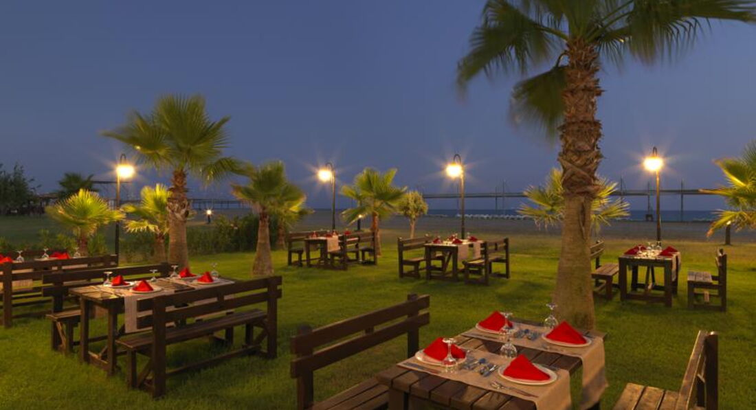 Только что, вернулись домой после отдыха. Хочется вернуться обратно)))) Все было хорошо, заселение прошло быстро, никаких денег мы не платили и намеков на это не было. засели нас в виллу около бассейна, что очень порадовало. На территории чистота и красота. Весь персонал постоянно трудится, все улыбаются, всегда здороваются. Убирают каждый день, мы даже отказывались от уборки, так как в номере нас постоянно не было. Либо на пляже или у бассейна, где всякие развлечения проходили, либо уезжали на экскурсии. Экскурсии брали от гида, все было хорошо, от отеля забирали и туда же возвращали. Питание разнообразное,фрукты есть, морепродукты были, голодными мы не были, даже уже есть и не хотелось. официанты быстро приносят напитки. Очень красивая территория отеля, есть где погулять, посидеть попить кофе по-турецки. Вообщем ве хорошо, нам понравилось. Мы отдыхали с дочкой 15 лет. Поэтому про детскую анимацию и детское питание ничего сказать не могу. В целом , мы бы еще раз вернулись сюда! За территорией отеля в 15 минутах есть поселок Кизилот, там рынок есть и маленькие магазинчики, там покупали викторию по 2 доллара за килограмм. Спасибо всему персоналу за их работу!!!!!