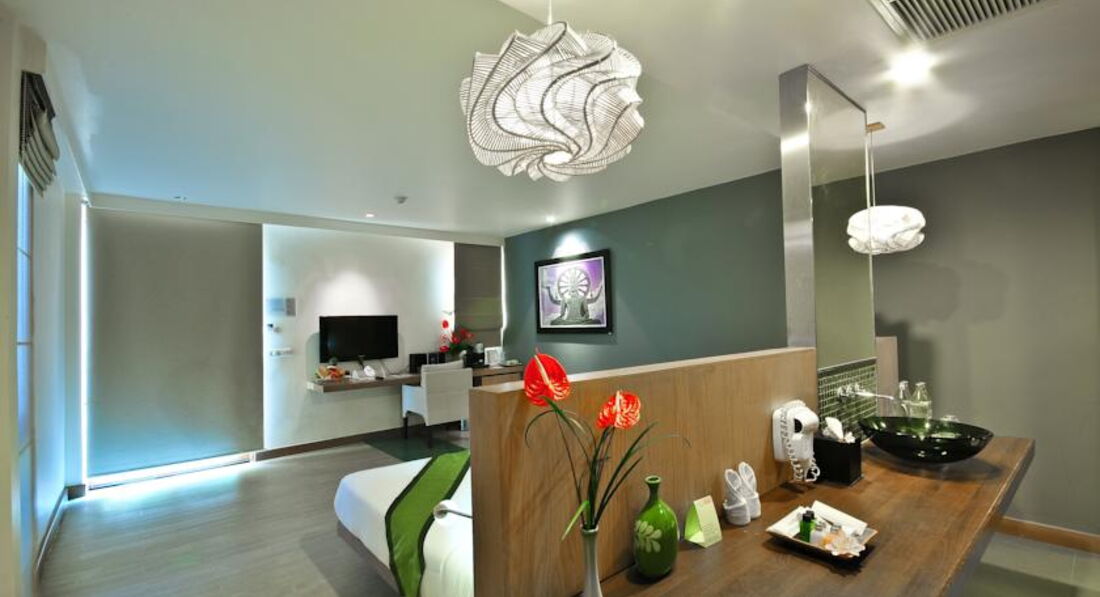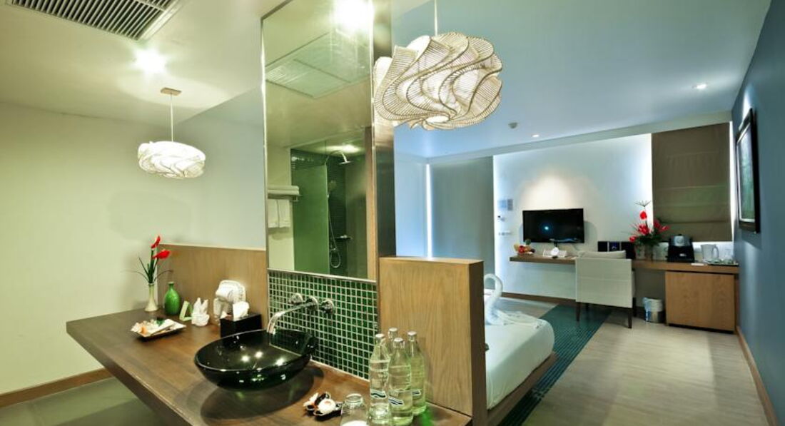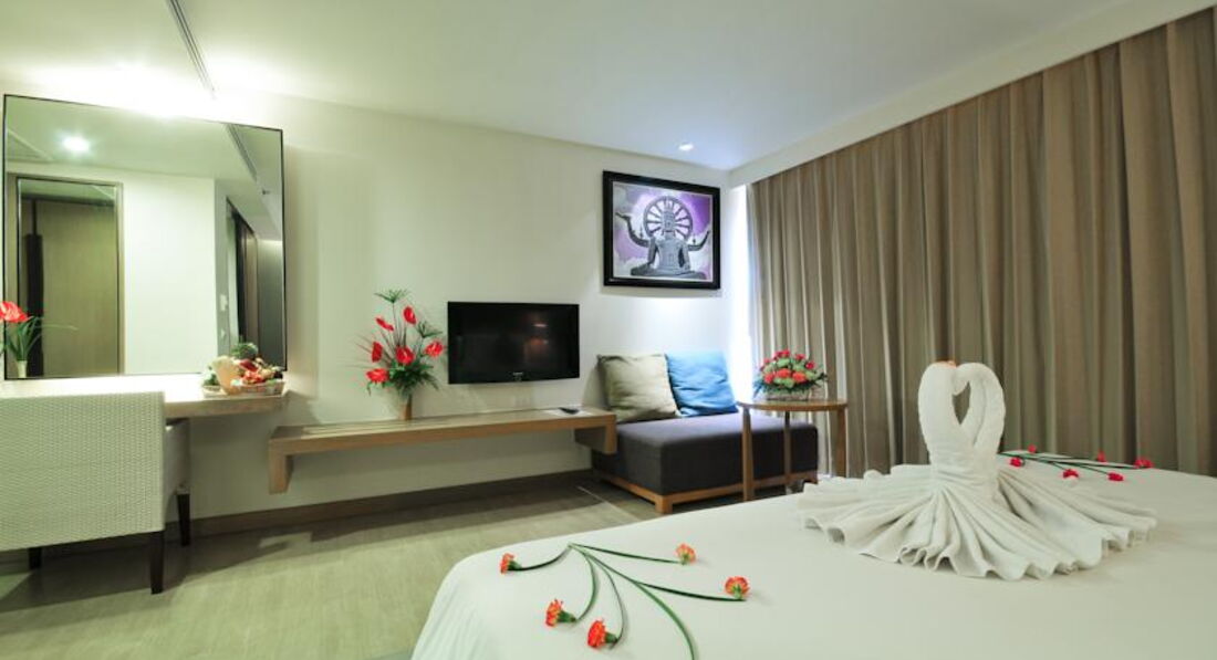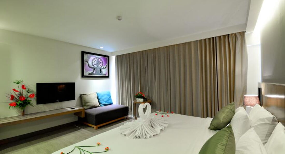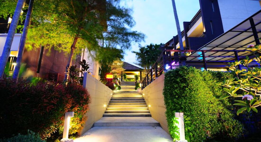 Отель - обычная четверка. Находится в стороне от магазинчиков и кафешек, на краю пляжа Ламай.