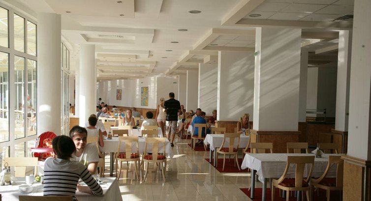 Отдыхали в июле 2013. Отель большой, основой контингент поляки, немцы, украинцы. Молодежи мало. Отель находится в 100 метрах от пляжа. Пляж бесплатный, но шезлонги и зонтики по 8 лев. Места возле бассейна люди занимают с 9 утра, на всех шезлонгов не хватает. Кто не успел, лежат на траве за шезлонгами. После обеда часть шезлонгов освобождается. Завтрак и ужин-шведский стол. Меню одинаковое постоянно, но выбрать есть из чего. Помидоры, огурцы, капуста, лук, колбасы ветчина, 3 вида сосисок, пару наименований фруктов. 2-3 блюда из картошки, 2 первых блюда, тефтели, курица, рис. В общем голодными небыли. Номера хорошие (для 4 звезд). Постель меняют раз в три дня. Убирают посредственно. В целом отдых понравился, персонал приветливый. Сейф и wi-fi платно, тренажерка бесплатно.