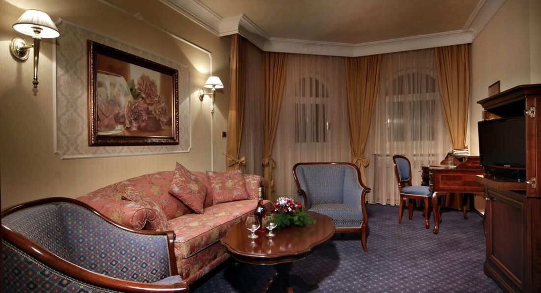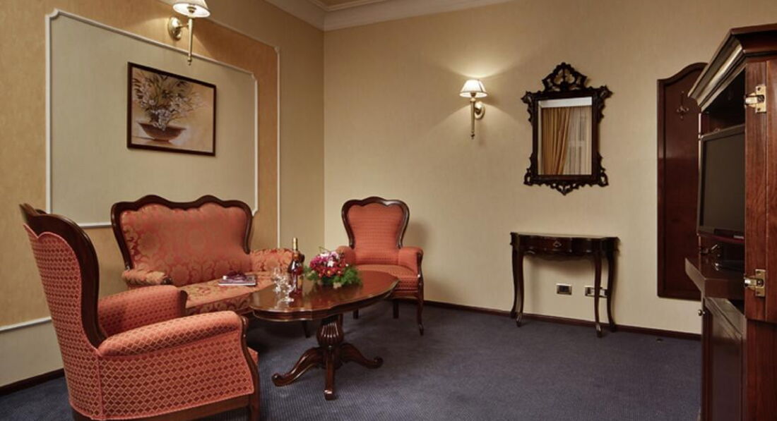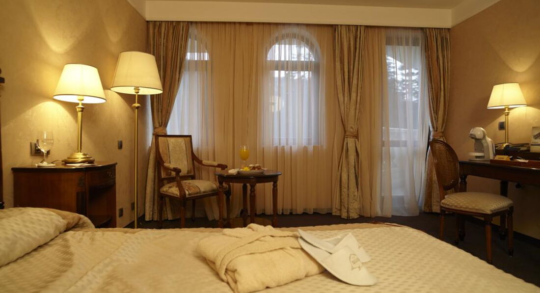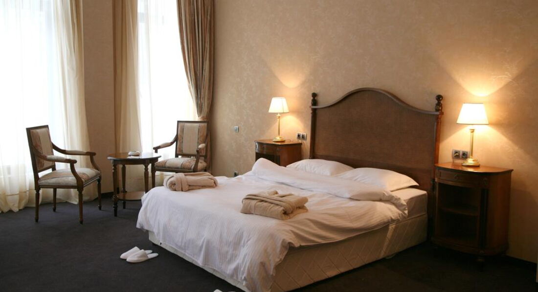 Типи номерів: Standard (одне двоспальне ліжко або два односпальні ліжка, макс. 2+1 чол., 25 м2); Junior Suite (одне приміщення з одним двоспальним ліжком та розкладним диваном, макс. 3+1 чол., 35 м2); Apartment (спальня з двоспальним ліжком та вітальня з диваном, є суміжні двері, макс. 2+2 чол., 45 м2)У номері: сейф: у номері, безкоштовно зміна білизни: через 2 дні кондиціонер: центральний room service: платно зміна рушників: щодня телефон прибирання номера: щоденно капці фен: є міні-бар платно балкон ТБ: кабельне душ халат
