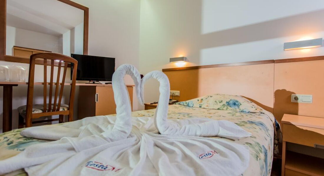 Отдыхали в Фиеста М с 06 по 20 июня 2014 года. Были вчетвером: я, сыновья 7 лет и 3,5 года, и наша бабушка). Номер Студио, на 4-м этаже, с видом на море. Питание – все включено.