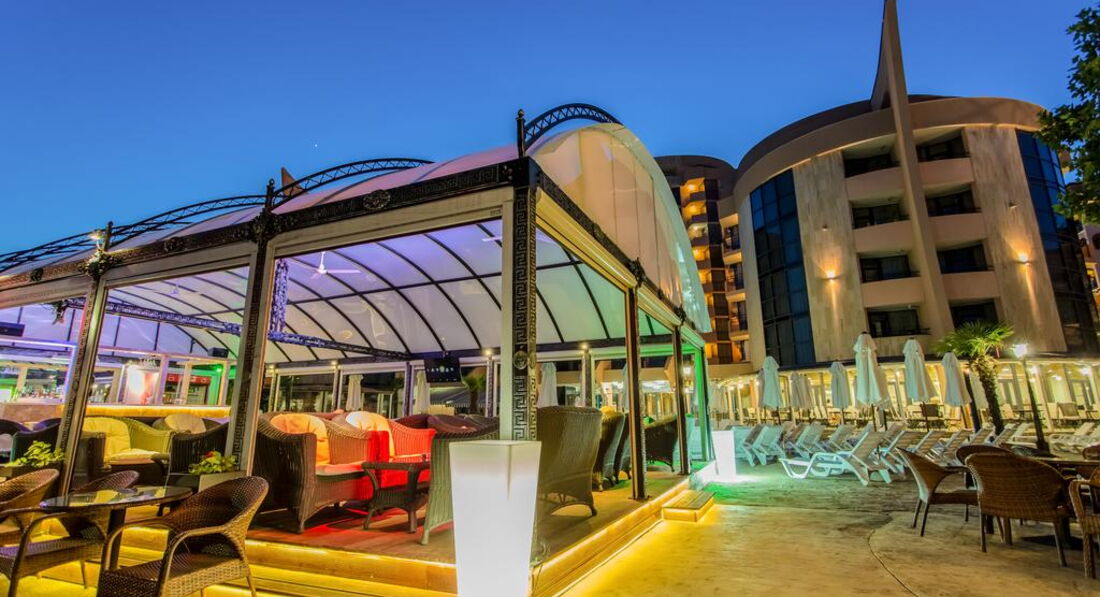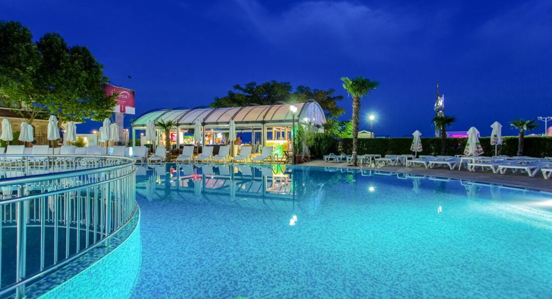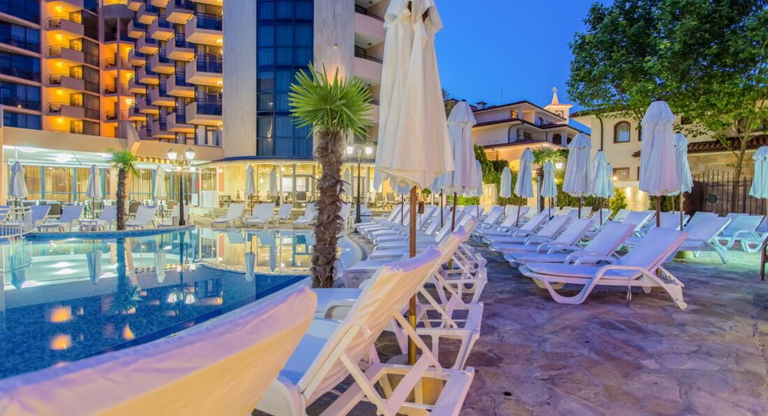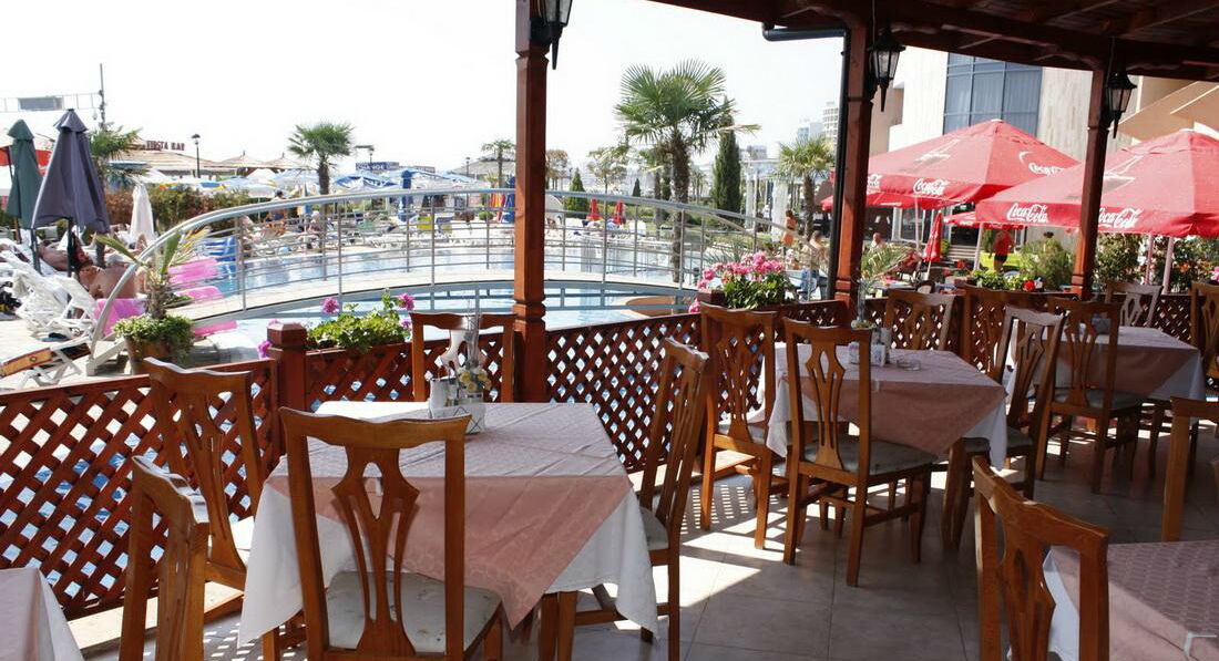 Отдыхали в отеле годика два назад. Что хочется сказать до сих пор приятные воспоминания. Здесь нет приставал из Египта ( купи экскурсию) нерусских национальностей из Турции ( тоже надоедают). Отдых спокойный и размеренный. Отель приятный новая мебель хорошие номера. Отель новенький и в хорошем состоянии. Обслуживание было на высоте люди не просто улыбаются потому что так принято они действительно рады видеть туристов из Украины как и из других стран. Отдыхает много европейцев большинство немцы. Бассейн не большой больше для деток. Шезлонги в Болгарии все платные так у них принято и расположение отеля здесь выигрывает. Ты можешь лежать у бассейна и купаться в море. Море обычное не могу ничего сказать, но песочек очень белый и как сахар хрустит по ногами. Каждое утро все пляжи чистят специальным трактором который убирает мусор дробит песок и делает гладкой поверхность. Это приятные ощущения каждый день. Очень понравилась кухня суры. мясные блюда, салаты очень похожи на наши к ним не нужно привыкать, карточка с овощами и мясом вместо булочки гамбургеров. Из экскурсий я бы порекомендовала город Несебр при чем можно добраться на местном транспорте городок небольшой обойти можно за часик полтора. Главная прелесть региона Солнечный берег в его набережной и очень колоритной ночной жизни. Открываются бары и рестораны на берегу моря и тебя заманивают громкой музыкой и красивыми коктейлями. Получили массу удовольствий и приятных воспоминаний.