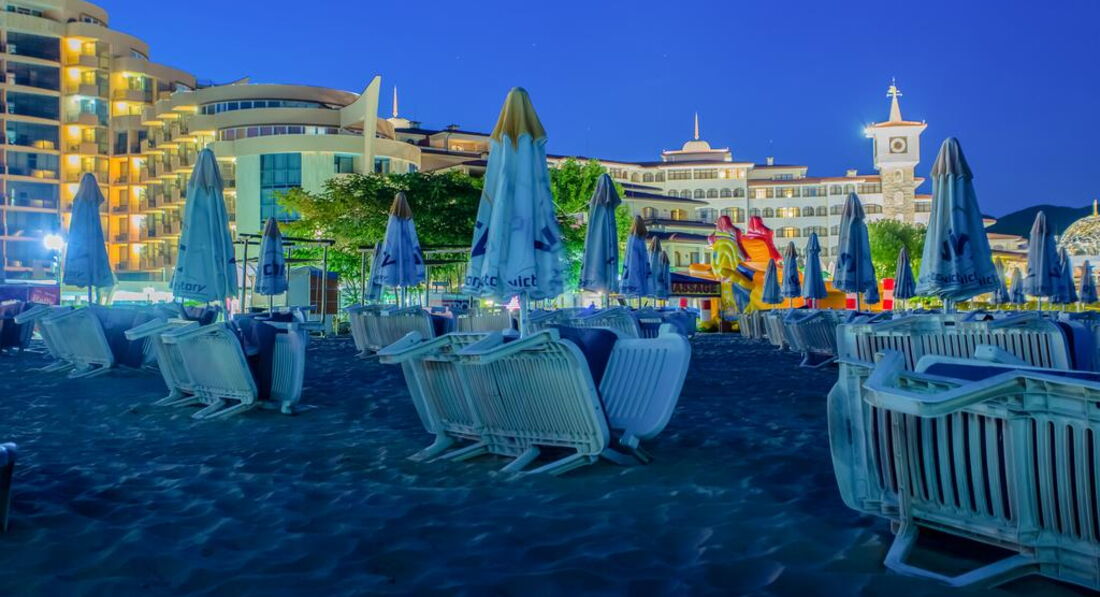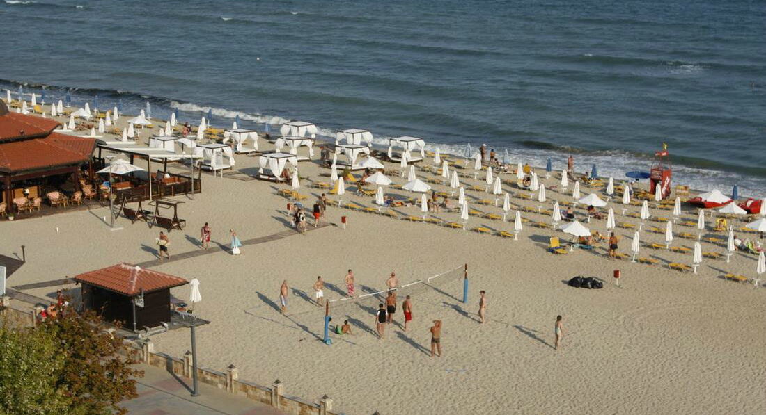 Отель на первой линии, до моря минута ходьбы. Море чистое, тёплое, пологий вход. Лежаки и зонты на пляже платные( по 8 лев каждый- это примерно 4 евро). Дешевле купить свой зонт(10 лев) и нежится на тёплом песочке.