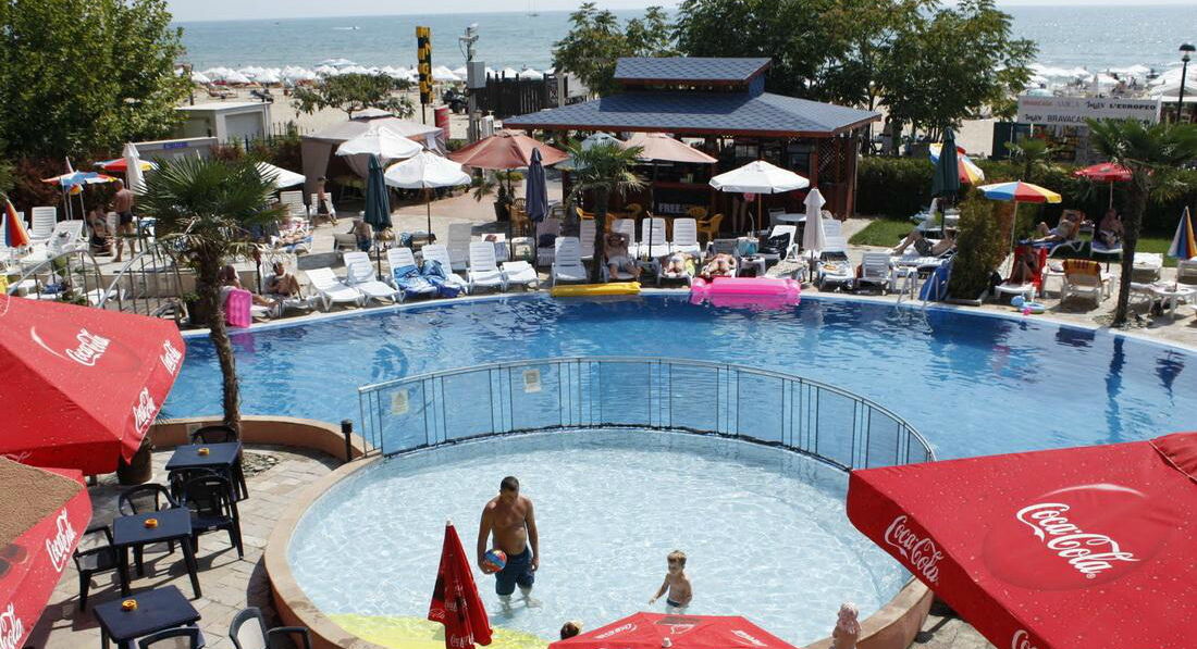Единственный огромный плюс - это расположение отеля: выходишь из отеля - и ты на пляже. Очень удобно. При этом, до автобусной остановки, откуда можно поехать, например, в Несебр, идти минут 7 средним шагом.