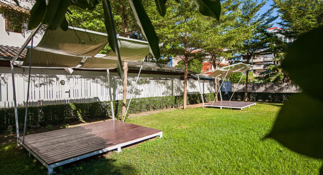 • сад/зелений лужок на території