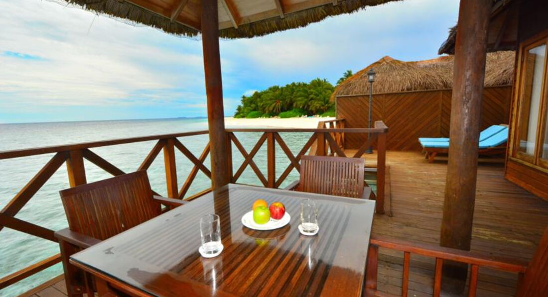 Прочитали много положительных отзывов про этот отель и решили поехать туда с семьей, хоть это и не было бюджетным вариантом: за 2 взрослых и ребенка 13 дней все включено отдали 350 тыс руб плюс 350 дол трансфер (без авиа билетов) на мальдивах мы четвертый раз и есть с чем сравнить. Сразу отмечу что часть а точнее почти половина острова обнесена волнорезами и купание в этих местах мало приятно, да и красоты океана там не наблюдается,но именно эти номера в первую очередь заселяют сотрудники отеля,даже когда есть пустующие номера со стороны открытого океана,где не в пример лучше. Нас тоже заселили сначала на сторону с волнорезами,после наших настоятельных просьб нас на 5-ый день переселили на другую сторону. На острове очень много людей,поэтому ни о какой уединенности и релаксе речи быть не может. Питание в большинстве случаев очень острое, завтраки скудные,даже сосиски и бекон какие-то не съедобные вовсе.из мяса в 95% только баранина,а рыба всегда танец,несколько раз давали вкусную папку,но в целом очень разочарованы. Все включено тоже смешное,из напитков это чай и растворимый кофе на опресненной воде вкус получается отвратительный,снеки 1 час в день острые бутерброды и ролы,коктейли во все включено не входят никакие, также входят бутылированная вода, кола спрайт, крепкие напитки местного производства,мороженое за дом плату. Спа очень дорого, даже в отелях классом лучше цены на массаж дешевле. Удивительно ,на острове очень много птиц,есть цапли и это красиво, но также есть какие то невзрачные птицы, которые не дают спать по ночам, так как в пять утра у них перекличка и кричат они очень резко. На той стороне острова, где открытый океан от номера до пляжа нужно идти не по кусочку а по земле,у них там клумбочки разбиты. В общем не знаю,кто там эти отзывы замечательные строчил, но отель завышает свою цену процентов на 30-40. И да,относительно рыб и рифа, рыба есть не скажу что ах, искушенных в снорке не удивишь, но мы в этом смысле остались довольны. Отель рекомендую только в эконом варианте