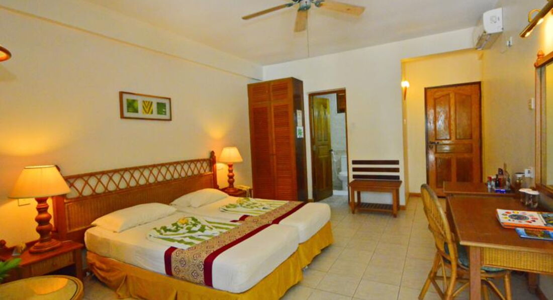 Классик – очень симпатичные домики (мы их назвали «домики-гномиков»), со своей верандой, где есть столик, два стула, сушилка для белья. Сам номер просторный, удобный, отдельно выделена гардеропная зона (там шкаф, тумба для чемоданов). Внутри в классик обстановка не для привередливых туристов, в ванной комнате – душ за шторкой. Мебель устаревшая, но все целое, рабочее. Сейф бесплатный. Кровать большая двух спальная. Кондиционер висит так, что дует четко на кровать (может только конкретно в номере 206 так?). Пришлось чуть отодвинуть кровать к стене. Есть еще потолочный вентилятор, но мы им не пользовались. Одеяла нет, только простыня, с включенным кондиционером поддувает как-то. Сантехника совсем старенькая, страшненькая. Есть зонт, два спасательных жилета, фумитокс (комары есть). В номере присутствует запах сырости (привыкли быстро, но даже с собой домой на вещах его привезли), но это и понятно в таком влажном климате. Белье постельное и полотенца пора давно сменить – сильно застираны, аж серого цвета. В номер иногда заползают насекомые разные (мы не боимся, понятно, что живем в бунгало в тропиках), может кому-то это важно знать. Очень не хватало чайника. Телевизора нет, мы это знали, поэтому взяли с собой ноутбук, куда закачали фильмы и смотрели по вечерам и в дождь. Мини-бар платный, цены очень высокие. В номер ставят каждый день по бутылке 0,5л. воды на человека. Уборка в номере два раза в день, без особого энтузиазма (хоть и чаевые оставляли), но и не плохо, на четверочку. В общем, нас все устроило, мы не особо привередливые, хотя бывали и в отелях класса люкс. Для нас главное расположение, океан и природа.