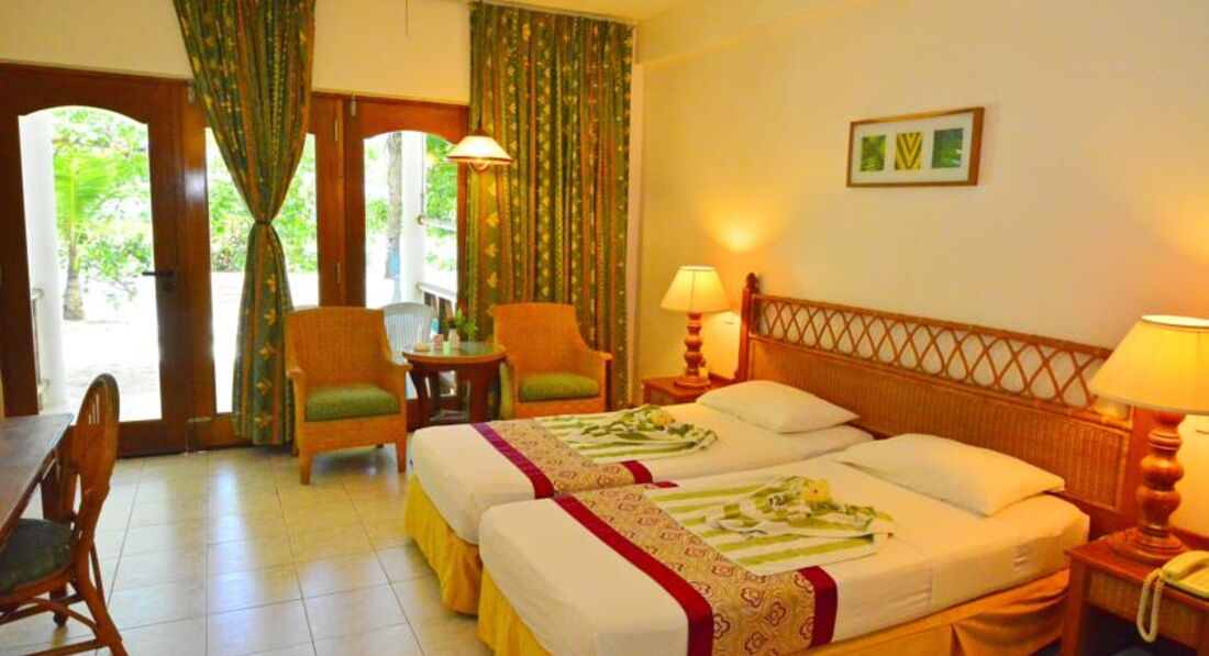 Номера вполне приличные. Убирают их частно и что самое главное все время в отсутствие туристов. Сам видел как рум-бой ждет пока мы уйдем на ужин, чтобы невзначай не помешать нам. Ни разу не встретил уборку в номере, но практически три раза в день мели песок и заправляли постель после меня. При этом очень доброжелательный персонал, все здороваются, улыбаются - "Доброе утро, сэр! Я сэр. И вообще отдых буржуйский, коктейли в море, пустой пляж, не смотря на то, что отель полон. Все куда то растекаются. Кто на экскурсии кто в бар, кто в море с масками плавает. Причем понравились такие фьорды из зелени в которые можно поставить свой лежак. Свой потому что на нем написан номер Вашей комнаты.