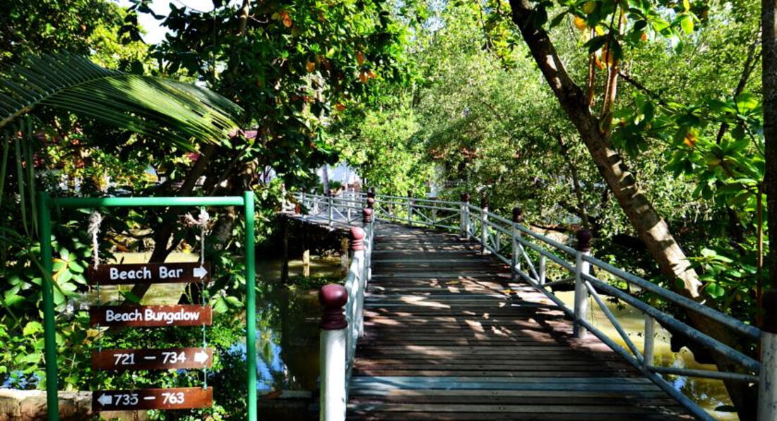 Самый лучший пляж здесь!!! Очень красивая территория, она не большая, но ухоженная! очень много зелени, поют птички, видела даже белочку (белую) они такие. Море чистейшее. По приезду нас хотели заселить в стандартный номер, он находится у дороги, мы даже не стали его смотреть, доплатили 7 тысяч и нас поселили возле мостика который ведет к пляжу, до пляжа от номера нам идти 10 секунд))) было очень удобно! хотели взять бунгало но за него на 12 дней пришлось бы доплатить 24 тысячи. Завтраки хорошие, много фруктов, очень вкусные и свежие. Я ела всегда омлеты, оладьи и молоко с мюслями, мне не надоело) из фруктов вкуснейшие арбузы и ананасы ну и их фрукты. Экскурсии дорогие, но в общем мы побывали на 5 экскурсиях. В номере убираются каждый день, полотенца меняют каждый день, а за день до уезда нам в вазе подарил цветочки, очень мило) Многие пишут про недостаток (река которая протикает) мы жили возле нее, что она плохо пахнет, да когда отлив она издает не лучшие запахи, но даже это я не считаю недостатком) я вообще не привереда, с самого утра и до вечера мы валялись на пляже. Дождей почти не было, два раза, один раз днем, мы под него купались и один раз ночью. Если там и идут дожди то как быстро они начались так быстро и закончились, небо опять ясное. А если и есть облака то под ними легко сгореть, потому что рядом с экватором. В общем мне очень понравилось, советую всем этот отель. Он не дорогой и очень красивый! Хорошего отдыха!