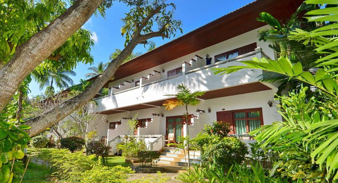 Всем привет.Отдыхал в этом отеле в период с 20.09.2013 по 02.10.2013 туроператор Пакс,встреча и проводы прошли без напряга.Перелет Тайские авиалинии,это супер,все на уровне.Трансаэро отмел сразу по возможности буду обходить данную компанию...Так вот размещение.Уточняйе у турагента ваше размещение,если в ваучере прописано Deluxe rooms,то это 3-х этажные здания у бассейна или в саду,но если First rooms,то это отдельно стоящее 4-х эт. здание без определенного вида.Нас разместили именно туда,но приблезительно за 200$ доплаты предложили переселить к бассейну,от чего я любезно отказался(к стати сейф у нас был в номере,в отличии от Deluxe rooms)номер чистый,вполне уютный не чем не отличающийся от всех других типов размещения.Завтраки обычные,сосиски,омлеты,хлопья,ну и все такое...Как кто то писал,дома мы так не завтракаем,полностью согласен.Пляж супер,места и лежаков всем хватало,напрягов не было.Расположение отеля я считаю очень удачное,практически конец Чавенга,и в глубине от дороги.Мотобайк брал в прокате при отеле на весь срок,удобно и без проблем.Все на нем обьездил,затраты минимальные удовольствий масса.Ну вобщем отдых прошел на ура.Так что отель рекомендую,и если не очень привередливы то вам First rooms,а 200$ потратите на себя.Всем приятного отдыха?Есть вопросы пишите..