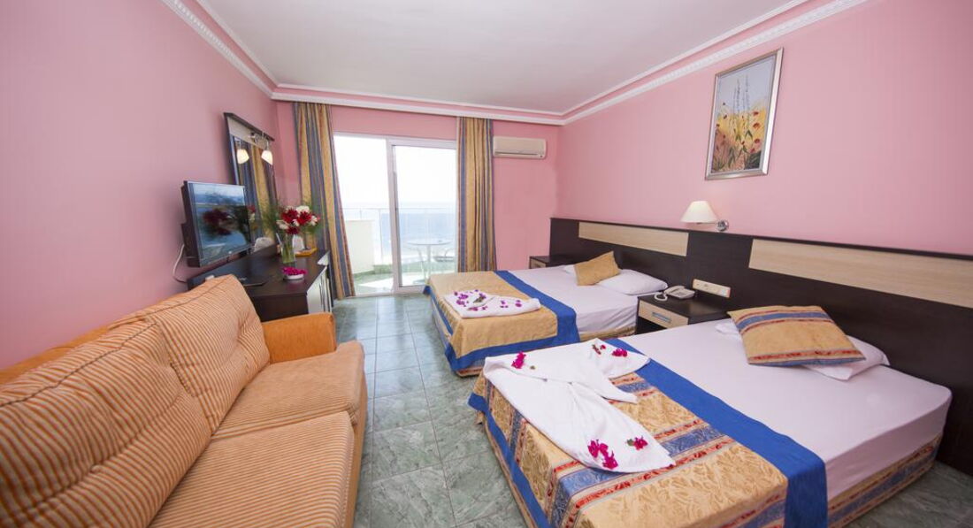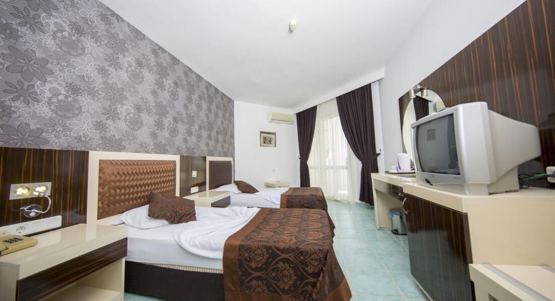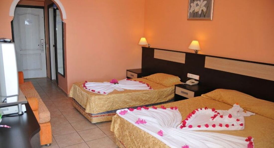Добрый день всем, читающим отзыв, сегодня вернулись..... Это весьма неплохой вариант, учитывая еще раннее бронирование. Далековато ехать из Анталии, но терпимо. Веселый гид Анастасия нам рассказывала о Турции. Быстро заселили, ресепшен- все русско-говорящие девушки. Номер чистый, вид на море, душ, санузел, 2 кровати, диван, телевизор. Можно пользоваться территорией соседней четверки. Есть теплый бассейн, хамам за плату, лобби-бар, бар на пляже, горки, много цветов, деревьев, городки для детей. Ресторан один, блюд нам хватало, курица, рис, баклажаны, оливки, зелень, сладости, клубника, яблоки, бананы, тортики, пирожные. Скажем так бьет по фигуре. Алкоголем не интересуюсь, впрочем вино и пиво есть, газировка через бармена. В лобби девушка хорошая работает, номера убирают каждый день, оставляли на чай обычно доллар. Мест в ресторане много, пляж хороший. Погода не фонтан была, волна сильная била. В баре на пляже кофейные автоматы и чай. В 16 00 полдник в лобби-баре. ПОЛОТЕНЦА выдают под депозит 10 долларов, берите свои, так удобнее. Есть магазинчики возле отеля, многие ходили на базар. Можете пользоваться тренажеркой и теплым бассейном, работает с 8 до 20 00. Хамамщики настойчиво предлагают свои услуги в первый день вашего отдыха, гиды от Анекс-тура Орхан и Эльнур ответят на все ваши вопросы. Были и недовольные люди, здесь уже настрой должен быть. Брали путешествие к Николаю Угоднику, но это уже ваше желание. Улетать не хотелось, климат в Турции и сервис располагает к отдыху. Всем читающим хорошего отдыха, персоналу спасибо.