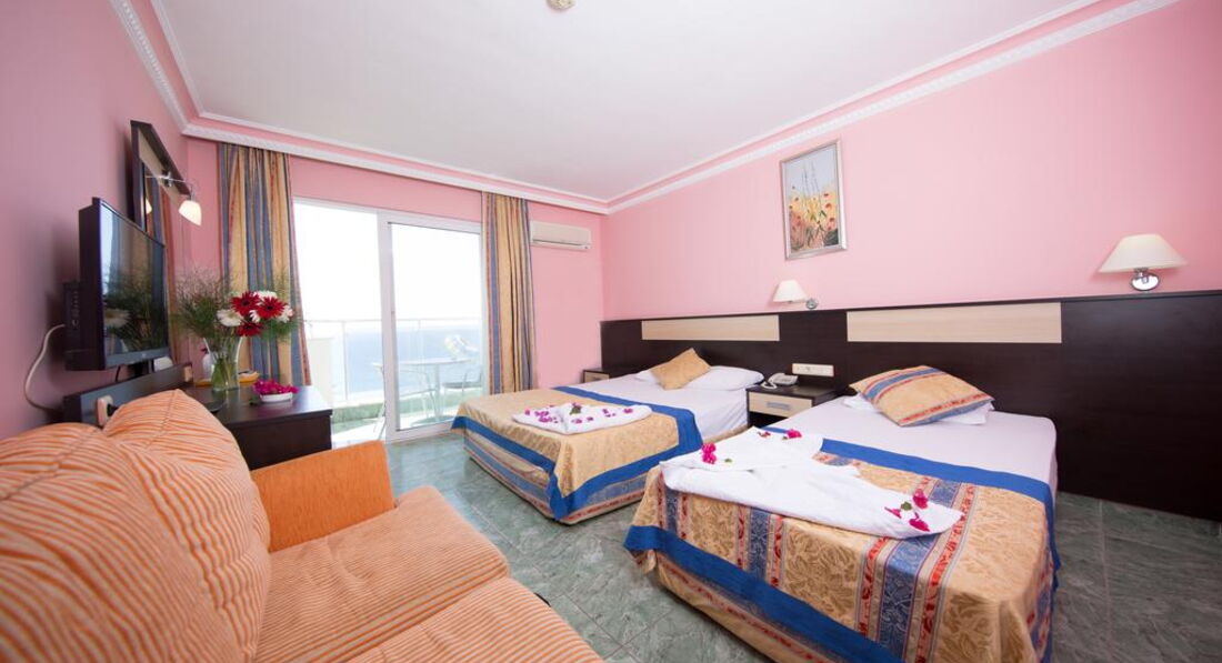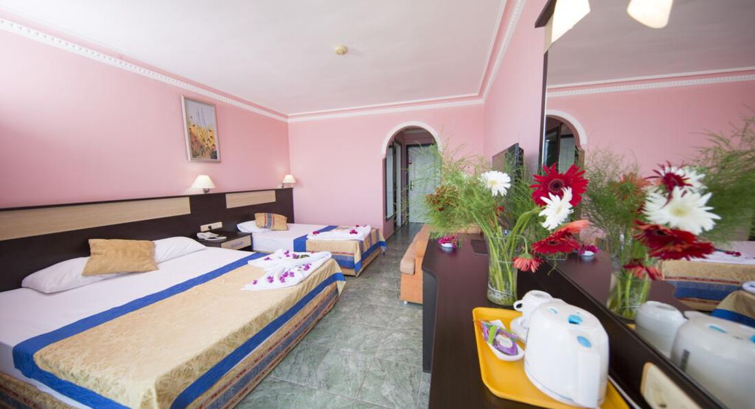 Уважаемые соотечественники!! Если вы едете впервые, только не этот отель. Дискотека до 2 долбит недалеко от отеля, номер убирали 3 раза за неделю, не меняли полотенец. Питание просто отвратительное (рыбу ела 1 раз, курица каждый день, соя, наидешевая колбаса 3 видов и такой же сыр, помидоры-огурцы каждый день, из сладостей 2 вида позорных пирожных, торт был единожды на весь отель, больше никакого мяса не было.. Алкоголь в баре низкого качества. Друзья, не надо туда ехать. Я в Турции впервые и думала, что такое питание - это норма, но когда поехали на экскурсию с отдыхающими из других отелей, такого же класса, я поняла, что хуже , чем у нас нет нигде. Столы у них просто ломились от изобилия, короче, они набирали вес, а я за неделю скинула 2 кг. За 6 ночей отдала 25000. И что я получила?. Аниматору можно поставить 3. Ресепшн - 5 , столовой - 3 с натяжкой, пляж - 5. Уборке - 4-.Бар - 3. Страна очень красивая и интересные экскурсии, только это и скрасило весь отдых. Сегодня пожаловалась в Корал Тревел, надеюсь Вы приедете уже в лучшие условия.