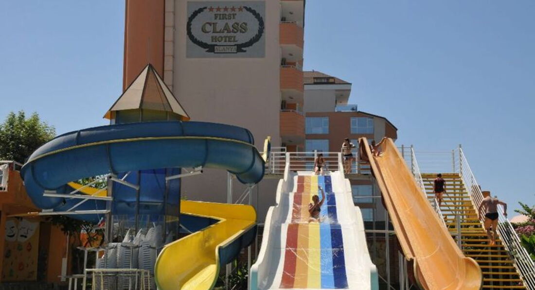 Отдыхали с мужем в отели FIRST CLASS. В Турции отдыхали первый раз, поэтому нам все понравилось. Было тогда все интересно и дорога до отеля длиною 3 часа была не утомительной, так как нам было все интересно. Отель сам не большой, территория маленькая, но если не лежать целыми днями у бассейна(а их там 2), то отдых вам запомнится. Единственный минус, что бы я отметила, это отдаленность отеля от инфаструктуры. Если вы хотите съездить на экскурсии, то далековато будет добираться. Питание в отели на 4. Очень придирчивым не понравится. Хотя мы голодными небыли. Конечно же, кто привык к борщам домашним, то вам придется потерпеть)))) Отдельно хочу сказать про местный хамам. Не надо никуда ехать, сходите в местный хамам при отели. Впечатлений хватит на весь отпуск. Я брала еще 5 массажей))) Массажист по имени Ирэн был просто супер. Ребята работают на славу. Ходили на местную дискотеку вечерами. Молодежи там будет не скучно) Пляж находится через дорогу. Дорога пролегает через торговые ларьки. Все турки, без исключения очень улыбчивые люди и мой вам совет-улыбайтесь им в ответ. Не ходите с видом, буд то бы вас сейчас изнасилуют. Брали экскурсии на дайвинг(советую), ездили в горы(тоже советую). На местном пляже полетали на парашуте))))впечатления остались до сих пор. Вообщем если вы едите не из за отеля, то вам сюда! Да кстати, в метра 200 от отеля стоит банкомат, меняет деньги без процентов. Если есть вопросы, пишите, отвечу. Хорошего вам отдыха!!!