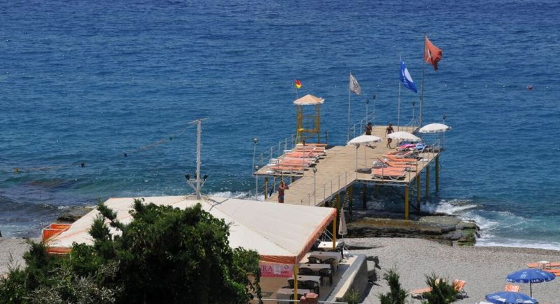 Пляж - близко, 5 минут ходьбы. Через дорогу или подземку. На пляже-лежаки и матрасы. Бар - с 10.00 безалкогольный. Душ, туплеты. На соседнем пляже волейбольная площадка. Мелкая галька, заход не для детей и тучных людей. Волнами набивает рыхлый порог, потом сразу глубоко. Выходить из воды тяжеловато, т.к. ноги проваливаются на пороге. Есть плиты-камни. Аккуратно.