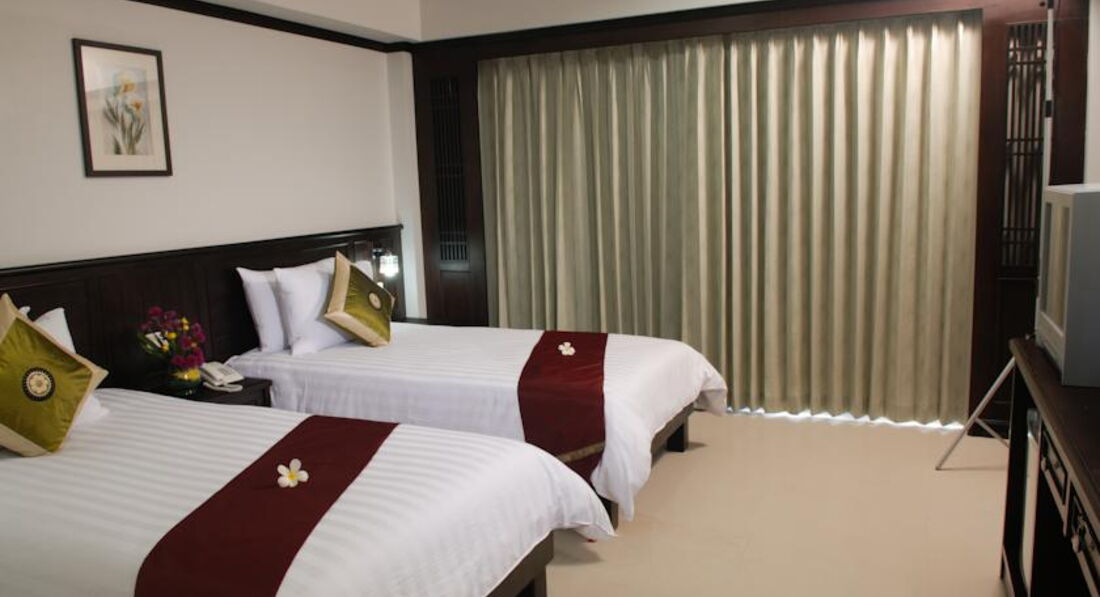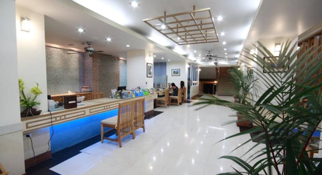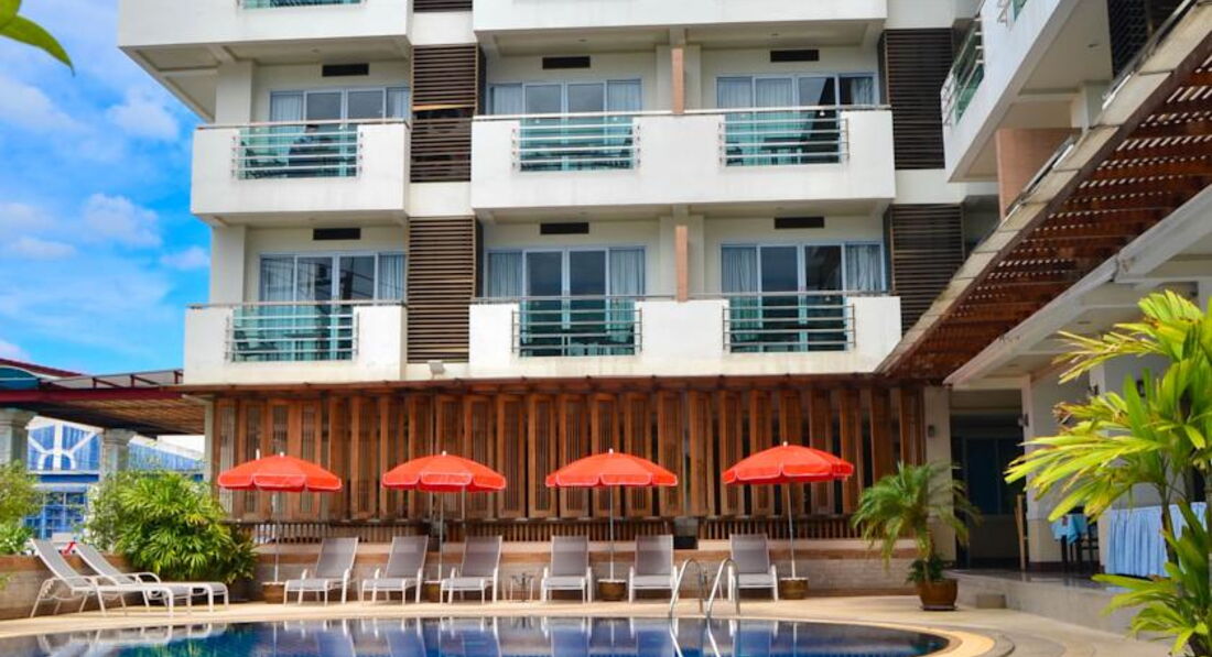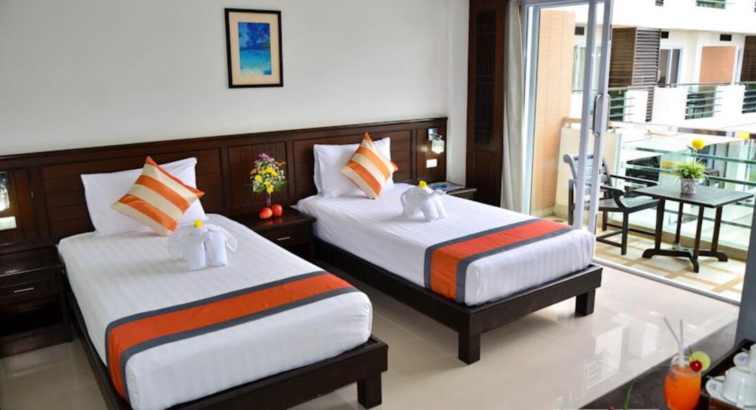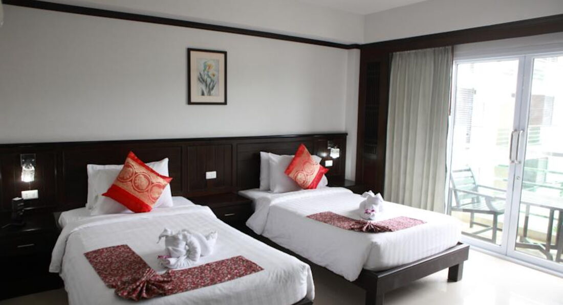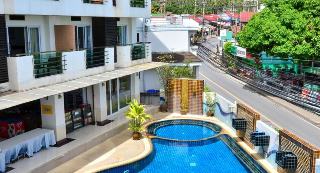 Отдыхали в январе 2012 года с друзьями. Первое впечатление было хорошим, и оно не изменилось. Заселили нас минут за 30, немного долго. У нас было четыре номера, бронировали 2 номера с двуспальной кроватью и 2 с двумя кроватями, все было как заказывали. Бронировали через booking. Номера хорошие, все с балконами, просторные, в ванной шампунь, гель, шапочка, вот только душ несъемный. В номере есть минибар, чайник. Питание как и везде в Тайланде: фрукты, яичница, чай, кофе, хлопья и т.п. Персонал по мнению нашей компании отличный, т.к. наши ночные посиделки у бассейна с купанием похоже им нисколько не мешали. Территории у отеля нет, только небольшой бассейн и несколько лежаков. Вид из окон выходит на дорогу, прачечную и ресторанчик. Нас это не напрягало, т.к. ночью спали с закрытыми окнами и шума не было, кондиционер работал хорошо. Отель отлично подходит для ночевок, до развлечений и магазинов пешком 10-15 минут или 3 минуты на тук-туке. В отеле 4 этажа и нет лифта, особого неудобства по этому поводу мы не испытывали. Вообщем советую.