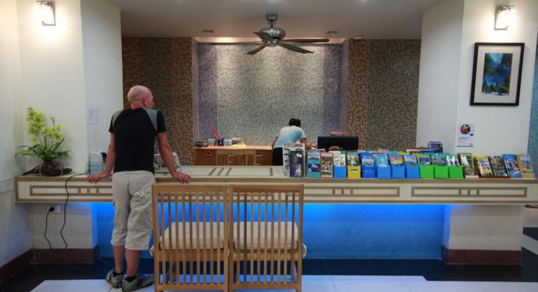 В отеле все очень отзывчивые и обстановка довольна домашняя. Хорошо говорящий на английском языке персонал отеля. В номерах все необходимое, сейф на ресепшине, бассейн до 8 часов.
