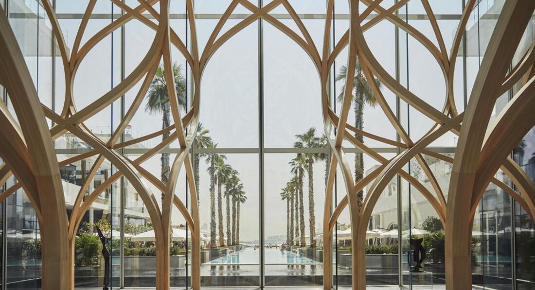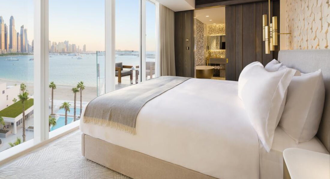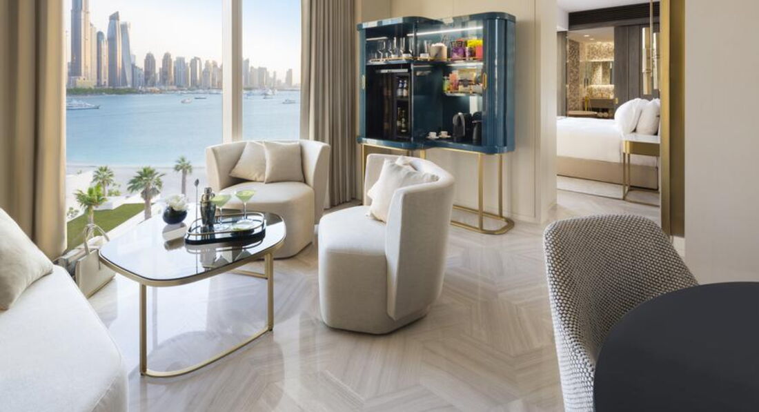 Вишуканий готель розташований на стовбурі знаменитого острова-пальми Palm Jumeirah з чудовим краєвидом на Перську затоку. Курорт також знаходиться недалеко від ділових районів та основних туристичних визначних пам'яток та розваг Дубая. Розташований на стовбурі Пальми прямо перед власним пляжем, в одному із найпривабливіших місць у світі. На 16 поверхах розташовано 477 номерів та люксів з шикарними вивіреними інтер'єрами, розробленими бюро Yabu Pushelberg та NAO Taniyama & Associates. Деякі номери обладнані чудовими приватними басейнами. Також, в готелі Viceroy Palm Jumeirah Dubai розташовані 222 приватні резиденції Viceroy Residences. З кожної з них відкривається захоплюючий вид на Перську затоку.