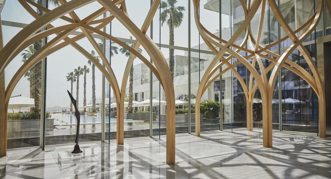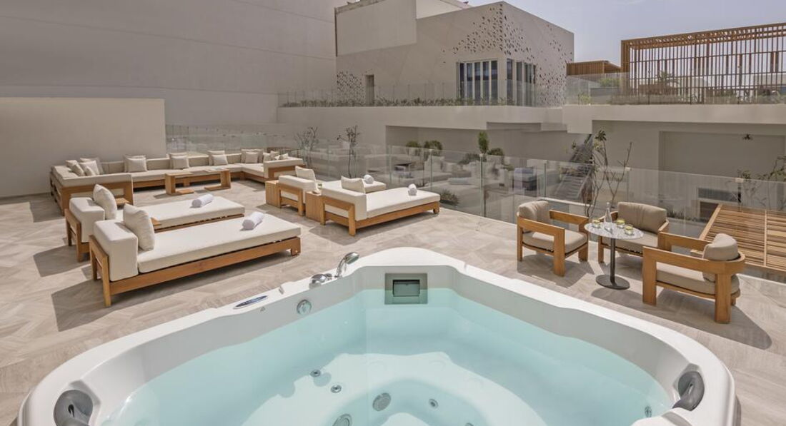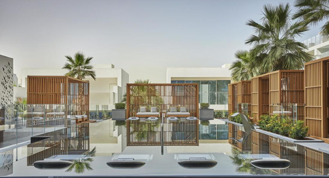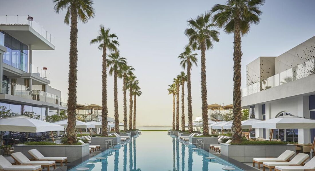 Сказать, что отель поражает арабским гостеприимством я не могу. Отель поражает сразу абсолютно всем, на 1000 процентов. Начиная с лобби Вы попадаете в что-то совершенно особенное, элегантное, прекрасное, стильное и удивительное. Великолепное лобби, где Вы проходите электронную регистрацию в отель на планшете, приятный и дружелюбный персонал, встречающий тебя в отеле радушной улыбкой. Номера, входя в которые, Вы попадаете в царство комфорта. На таких кроватях спать – само по себе отдых, который под собой подразумевает здоровый и приятный сон. Просыпаться с видом на Персидский залив, на шикарной перине, принимать ванну в умопомрачительной стильной ванной комнате, спускаться к завтраку в дизайнерский ресторан со столиками из натурального дерева и удобными креслами, плавать в инфинити бассейне с самым красивым видом на Дубай…все это именно то, зачем мы и ехали в этот отель и получили в итоге намного больше, чем ожидали. В отеле все продумано до таких мелочей, что порой становится удивительно как можно быть настолько умным, чтобы продумать все настолько точно и правильно, чтобы поразить всех гостей. Вы приехали с детьми? Отведите их в такой стильный детский клуб с бассейном, который Вы не найдете ни в одном отеле Дубая. Вы приехали расслабиться? Позвольте себе невероятное удовольствие в SPA. Я думаю, что отдельных положительных слов заслуживает персонал отеля, который старается сделать все, что от них зависит, чтобы Вы остались довольны. Это очень заметно, в особенности по сравнению в другими отелями на пальме, в которых мы уже бывали, но в которые мы не очень хотим возвращаться. Часто читаю недовольство русских туристов о том, что в отеле нет русскоговорящего персонала, но я лично отношу эти отзывы к невежству наших соотечественников, а не к минусам отеля ,уже пора бы понять, что во все страны лучше ехать не с русским языком в багаже знаний, а все же хоть с минимальными знаниями английского языка. Относительно пляжа, также многие пишут, что он маленький, ну а Вы сами видели много пляжем на острове больше? Почти у всех отелей такие пляжи и нечего искать на пальме роскошные пляжи, если они Вам нужны, езжайте на остров Саадийят в Абу-Даби или бронируйте Мадинат. Здесь приличный пляж, на котором хватит места поплавать всем, довольно глубоко , а вид – ну так он самый дорогой вид в Дубае. То же касается и строек по соседству. Если Вы мне подскажете место, где сейчас не видно строек в Дубае, я буду рада. Стройки видны отовсюду. Тут они никому не видны даже, только с пляжа.
