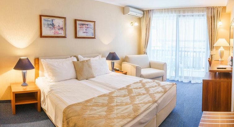 Типи номерів: Двомісний номер - Тип А Двомісний номер - Тип B Двомісний номер - Тип СУ номері: двоспальне ліжко або 2 односпальні ліжка кондиціонер телевізор DVD холодильник пряма телефонна лінія Wi-Fi та LAN /Кабель/ Інтернет санвузол з ванною фен тераса з частковим видом на море