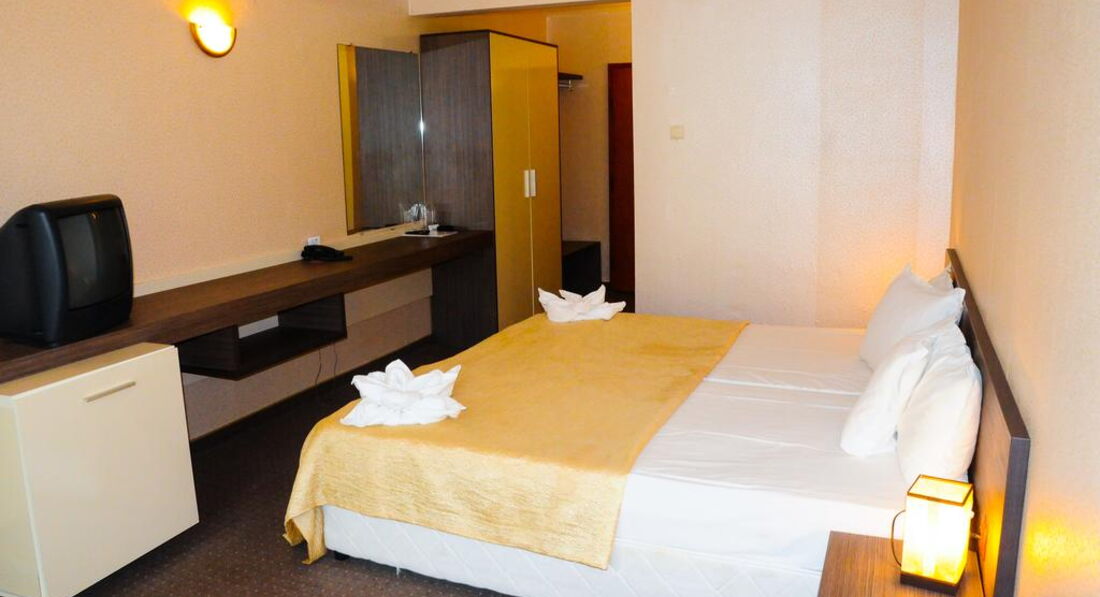 До этого всегда отдыхали на родных берегах , где все жутко дорого , а с тобой общаются как с человеком третьего сорта . Поразили цены на еду в кафе и пляжных ресторанах ( за 8 лево -160рублей комплексный обед ! ) , очень вкусная болгарская кухня , большие порции , не стоит заказывать 2-3 блюда, можно лопнуть.. Уборка ежедневно , смена белья раз в 2 дня . В номере кондиционер , холодильник , уютно чисто . Если настроены проводить большую часть времени в прогулках , на пляже или экскурсиях , то это отличный вариант , хорошие 3 звезды. Удобный выход их ресторана в бассейн , причем выйти из бассейна на улицу, минуя рецепшен невозможно. Это удобно , когда дети одни купаются в бассейне . До пляжа очень близко , около 50 м . На пляже ночью дискотеки ,