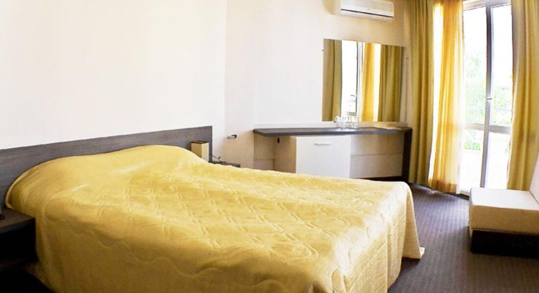Были в Созополе (2 взр + реб.12 лет) в первый раз..оч. красивый городок, с чистым морем и доброжелательным населением). Отель с виду обычный..где-то потертый, но номер( у нас был номер-studio) хороший, большой, после ремонта, большая 2-спальная кровать,шкаф, тумбочки, столики, ковролин, балкон. У ребенка отдельная комната (перегороженная отодвигающейся перегородкой) с большим диваном. Кондей (бесплатно), телек, полноценная душ.кабина, отдельный туалет, 2-ве раковины....вобщем оч. даже отлично. Уборка каждый день.Также есть небол. бассейн...там мы купались когда было оч. жарко днем на море...в теньке можно лежаки поставить и не печет солнце). Персонал доброжелательный, всегда помогут если попросить, спросят как отдыхается и пр.
