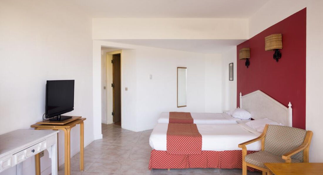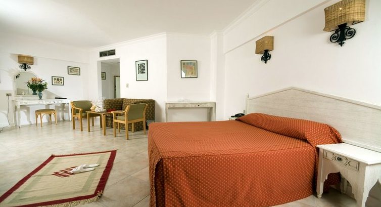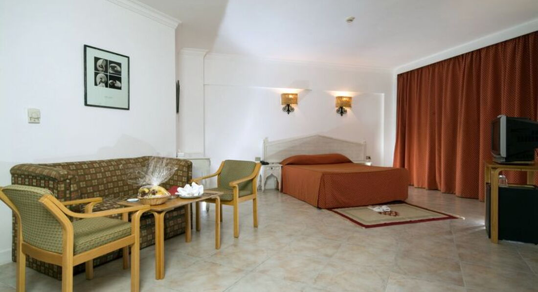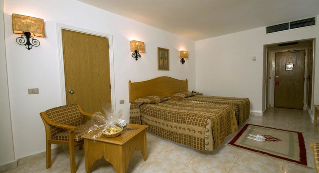 Ездили двумя семьями 2+2 и 2+1. Номера были готовы до нашего приезда.Дополнительные детские кровати УЖЕ стояли в номерах. Так что на рецепшн деньги ничего сразу не решат. Достался первый этаж с номерами внутрь территории (№121,126). Хотя номера практически рядом по счету, в действительности они оказались в разных концах здания. Практически друг против друга (через бассейны). Ничего не меняли…,но хотели… т.к. кондиционер дул, но практически не охлаждал. Предложили делюкс на 4-ом этаже за 100$ на неделю (больше площадь и Front Sea View ), но посмотрев на лестницу пошли спать в свой номер.Замечу,что отель практически весь трехэтажный, только в главном корпусе над рецепшн имеется четвертый этаж. С открытой дверью, ночами в октябре, никаких отрицательных эмоций не было. Номер обычный стандарт, 35 кв.м. Кровати раздельные,но легко превращаются в большую односпальную. Детям раскладушки с матрасами. Русских каналов по ТВ нет. Сейф в номере бесплатно, механический, ключ от него дают на рецепшн (за утерю 400 фунтов(80$)). Душ, унитаз с функцией биде, фен, мыло в дозаторах. Шампуней и сушилки для белья в санузле нет. Но открывалка для бутылок присутствует…)). Мини-бар при заезде пустой. Его можно наполнить позвонив по телефону или вытащивши из чемодана свой ;))).Убирали быстро и качественно.