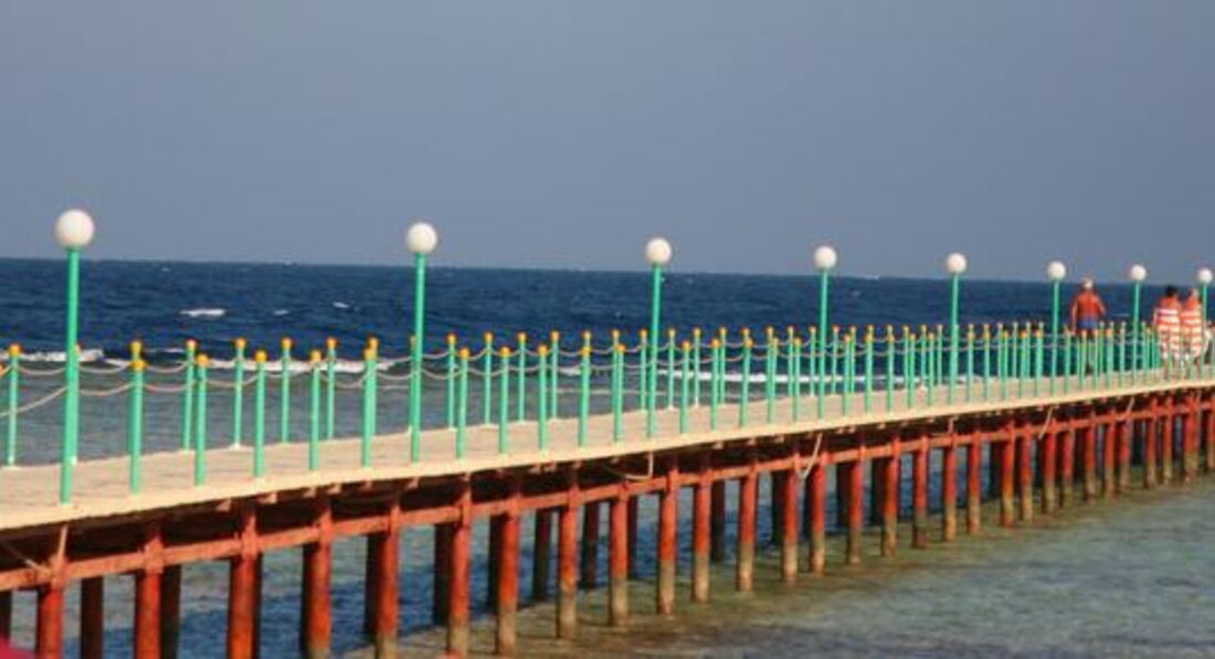 Если вам нужен именно песчаный пляж, то вам явно не в этот отель - он хоть и обещан, но он достаточно условный. Буйками огорожен узкий заход в воду, где есть песок, все остальное вокруг-кораллы. Поплавать можно только в открытом море с пирса, ну или в бассейне, их на территории три+детский. Коралловый риф действительно огромный и достаточно густо населен разнообразными рыбами, с масками можно плавать часами, а вот коралки в этом отеле нам не понадобились, т.к есть пирс. Риф, хоть и красивый,но в Шарме конечно все равно круче! Если вы летите в Египет из-за рыб, то лучше в Шарм. Есть на территории отеля дайвинг -центр, можно понырять, цену не узнавала, а также съездить на экскурсию на автобусе на черепаховый пляж, где всегда присутствуют огромные черепахи и заплывают дельфины, цена вопроса 28 долларов или 20 евро, но можно сторговаться до 25. Мы сами не попали, но другие туристы, кто ездили - были в экстазе! Пирс длинный, метров 200 и сразу за ним начинается глубина, метров 20, мелководья нет. Т.е. либо на берегу по грудь, либо в открытое море.