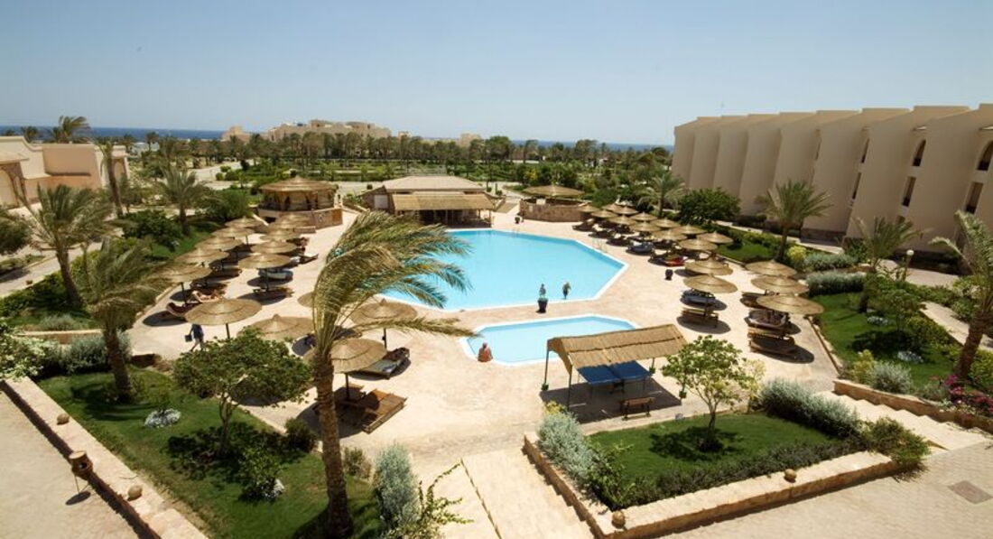 Поехали отдыхать в данный отель в конце июля. Сам отель находится в пустыни и рядом нет ничего. Ближайшее поселение в 5 км от отеля.По приезду разместили нас быстро, так как русских приехало 9 человек, номер выходил на море, но этому мы не долго радовались, так как окна выходят на кафе, где у них проходит анимация. Сон вам будет гарантирован только после 12 ночи. Сам отель старый, территория очень скудная, персонал убирается отвратно, но чаевые забирает регулярно, чтобы вам поменяли постель и полотенца, то их нужно скидывать на пол, а так их менять не будут, только аккуратно сложат. По русски в отеле никто из персонала не разговаривает, с гидом тоже беда в отеле, он вечно ничего не знает и обращаться к нему нет смысла. Еда в данном отеле тоже не блещет разнообразием, можно есть курицу или мясо 2 дня подряд, при чем его жарят на ужин и на следующий день на обед мы можем его снова есть, чтобы еда не пропадала, если проспали завтрак обед или ужин, то перекусить негде или за отдельную плату. Оплата здесь взымается очень интересно, если что то берешь из стекла или мороженое или еще что-то, то тебе выписывают чек, его можно оплатить только на ресепшене, они берут еще свою комиссию в размере 22% ОТ СУММЫ ЧЕКА. Деньги поменять можно якобы в банке, но за все время нашего пребывания там он ни дня не работал, а весь размен происходит в банкомате, который выбает только бумажную валюту,а монетки не выдает, типо такая же комиссия за обмен. Поэтому, когда оплачиваешь чек, то сумма прилично возростает. Да и цены у них там весьма высокие спрайт 0,33 за 2,70$ 3 шарика мороженого за 7,65$, сумма указана с учетом комиссии. Анимации здесь вообще нет как таковое, все очень примитивно, 4 аниматора, все итальянцы были, их анимация заключалась за весь день в этом : стрейчинг, аква-аэробика, ёга или дают сдутые мячи для игры, ну и вечером сама анимация, при этом каждую неделю анимация повторяется по кругу, одним словом скучно до безумия.По поводу баров их всего 2 бесплатных и работают они с 11 утра до 11 ночи и там только напитки, как алкагольные, так и безалкагольные и больше ничего нет. Если данный отель рассматривать для отдыха, то не стоит, если для алкагольных приключений, то это вам уже выбирать, после 11 ночи все платное становится. Что касаемо пляжа, то тут его нету, гулять по нему нельзя, так как все покрыто закаменелыми кораллами, чтобы искупаться нужно пиликать по пирсу метров 200 и там глубинна сразу метров 10. Один плюс это с маской можно понаблюдать за рыбками, но от хищников никак не защищены, плаваете сами по себе. Отдохнув там 12 дней, можно смело ехать и отдыхать снова!!!!