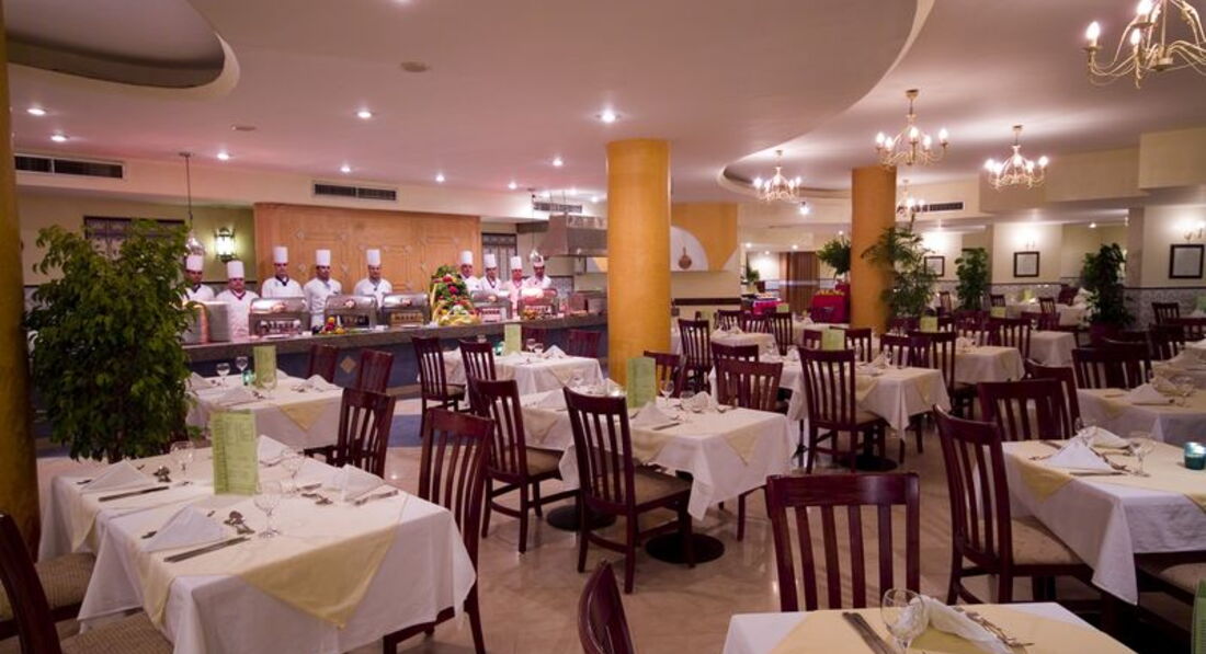• 4 ресторани (основний ресторан Flamenco, італійський ресторан Florencia, ресторан Sunshine Grill, Sevilla Bistro);