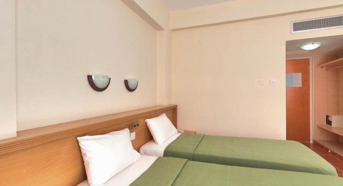 Мы отдыхали с подружкой в этом году в конце июня. Покупали горящие путевки в турфирме. Удобно что этот отель находиться в 10 минутах от аэропорта Ларнаки, мы приехали и были удивлены, что заселили быстро, персонал общается на английском и немного на-русском) Море рядом это плюс, минус серый песок и море похожее на черное, я 3 раза была в Греции на острове Касандра, там море потрясающее и поэтому немного была огорчена днем, когда увидела море, ожидала от Кипра другого, но прочитав отзывы и советы путешественников про красивейшие пляжи Кипра, мы отправились на пляж Нисси бич, и не пожалели, тут мое сердце снова взволновалось, просто чудеснейшее место, море изумительных цветов. Туда мы добрались на автобусе из Ларнаки стоимость которогь 4 евро. Обратно так же. На пляже Нисси бич есть множество баров. Лежаки и зонтик на двоих 7.5 евро. На другой день мы отправились в Айя Напу на клубную улицу города, там множество и греческих и американских и руских клубов. Очень много людей. И зазывал в клубы. Очень много фирм по прокату автомобилей, поэтому лучше всего взять напрокат машину и насладиться прекраснейшими пейзажами Кипра). По поводу питания сначала было не плохо, но за семь дней фасоль, яичница и бекон снились по ночам) На ужин мы иногда не приходили кушали в городе, там много греческих кафе с традиционными блюдами. Утром всегда был бекон, омлет, фасоль, яйца варенные, хлеб, хлопья с молоком, огурцы, помидоры, 2 вида сыра и колбасы, фрукты, чай, кофе, сок, вода, джем, масло и тостеры, которые делаешь сам. Ужин был получше, из мяса чередовали,подавали рыбу, свинину, говядину, курицу, каждый день разное. Но в один день мы попали на одни макароны. Такое ощущение, что попали в Италию, разные виды макарон с различными начинками, я не в восторге была конечно, поэтому отправились кушать в город. По поводу чистоты в номере крепкая 5, мы уходили на море в 9:00 и приходя у нас всегда был вымыт пол, чистое постельное белье, полотенца, в номере все работало, только вот чтоб зарядить телефон нужен переходник, который можно купить на ресепшене за 1 евро. Отель неплохой для 3 звезд, мы больше путешествовали чем были в отеле. За 10 минут до отъезда мы узнали, что сверху был бассейн, а мы не знали, печалька. В общем Кипр это рай, с восхитительными пейзажами, восходами и закатами, вкусной национальной едой и напитками, приветливыми, отзывчивыми и добродушными людьми. Но в следующий раз я бы бронировала самостоятельно отель, без питания, чтоб не быть привязанным к времени. Учитывая что отдыхаешь с друзьями.