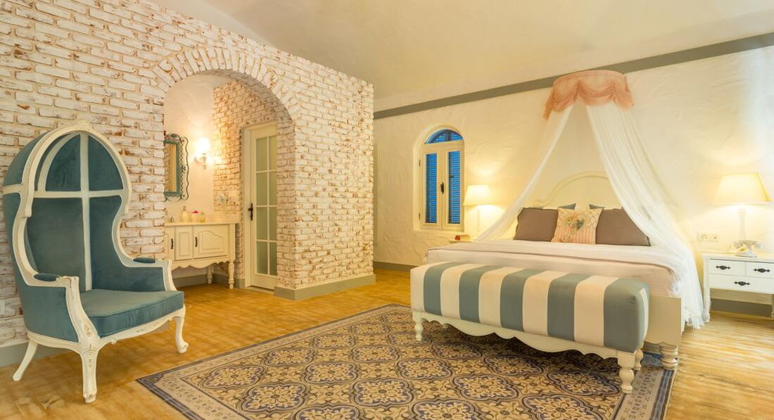 Типи номерів: • 76 Large Room (30 кв. м, вид на гори, садок або басейн) • 28 Superior Room (25 кв. м)У номері: • тераса/балкон • кондиціонер • Wi-Fi: безкоштовно • санвузол • душ • косметичні приналежності • набір для кави та чаю • мінібар: платно • TV • телефон • сейф у номері: платно • фен • французьке / роздільне ліжко • спальня • прибирання номера: щоденно • room service: платно • зміна білизни: кожні 3 дні