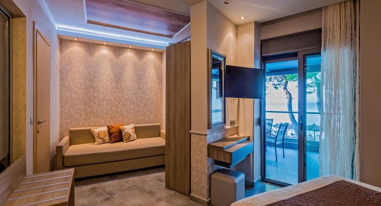 Готель розташований на курорті Халкідікі в Греції навпроти пляжу в Пефкохорі, за 300 метрів до центру селища. Автобусна зупинка розташована за 300 метрів від готелю, а міжнародний аеропорт за 120 км. Зовсім новий розкішний комплекс на пляжі. Просторі комфортабельні номери оформлені зі смаком та виходячи з сучасних тенденцій, обслуговування високого рівня та великий комплекс послуг зроблять відпочинок комфортним та спокійним. Зручно розташований в пішій доступності від центру популярного курортного селища Пефкохорі, де є безліч магазинів, традиційних грецьких таверн, ресторанів і барів. 3 двоповерхові будівлі з ліфтами. Рік побудови - 2014.