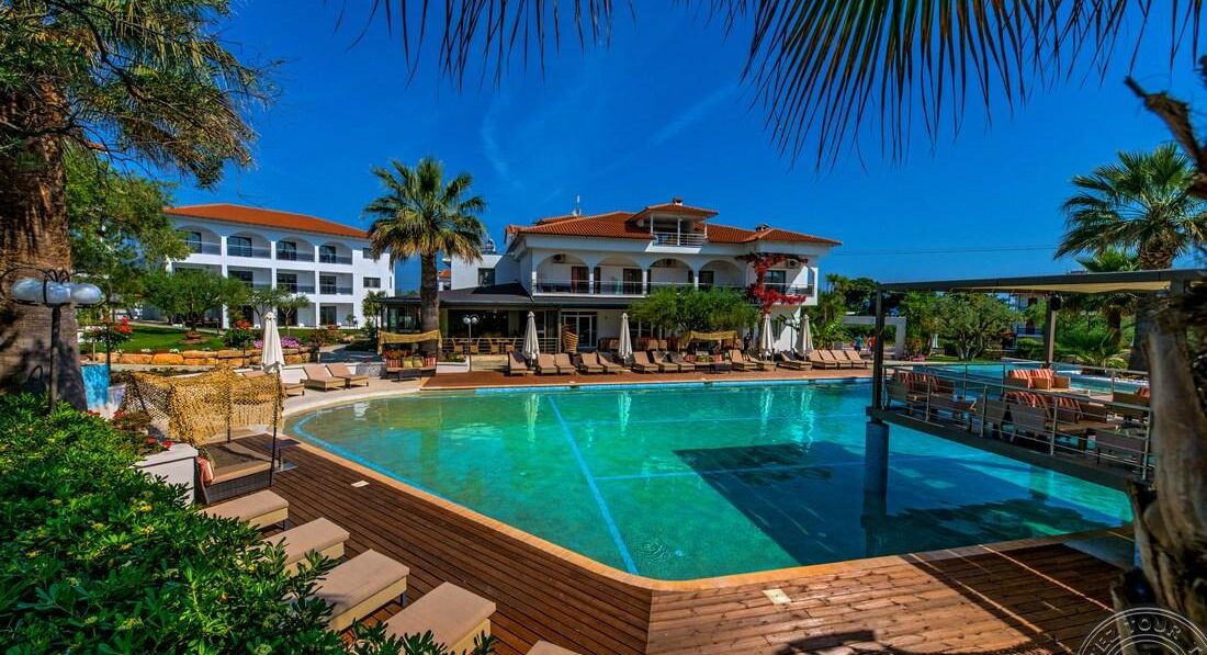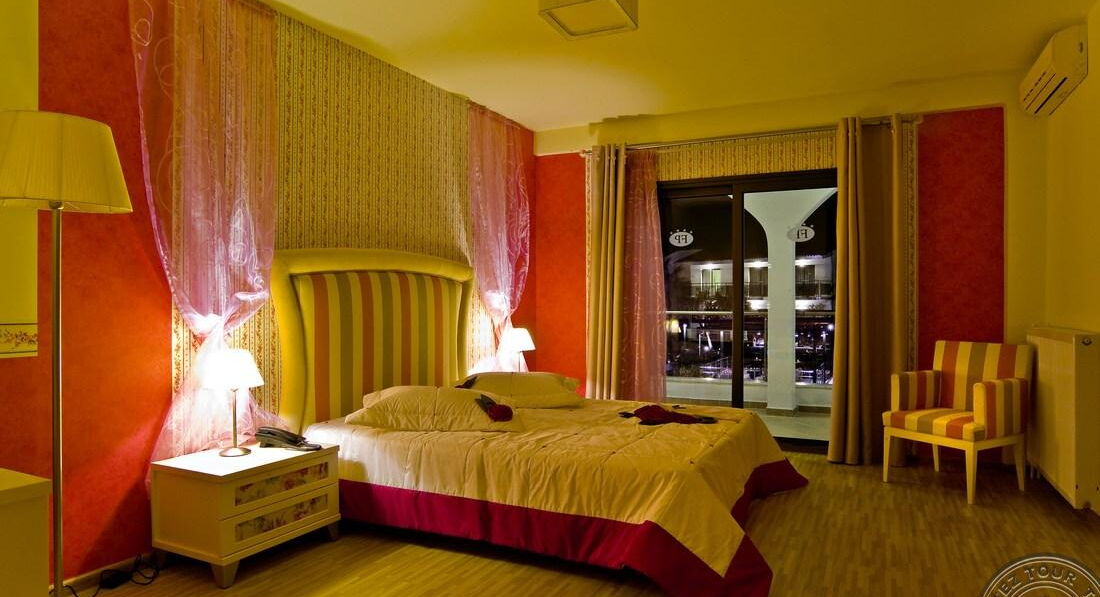 Готель 4* Flegra Palace розташований неподалік села Пефкохорі - одного з найкосмополітичніших місць у Кассандрі - першому півострові Халкідікі. Готель оточений розкішними мальовничими краєвидами, за 150 метрів від готелю знаходиться замок Flegra Palace і пляж, а в 500 метрах - центр села Пефкохорі. Аеропорт Македонія Салоніки (SKG) - за 100 км від готелю, а прямо перед готелем розташована автобусна зупинка. Приємна атмосфера у поєднанні з привітним персоналом та першокласними послугами зроблять ваш відпочинок незабутнім.