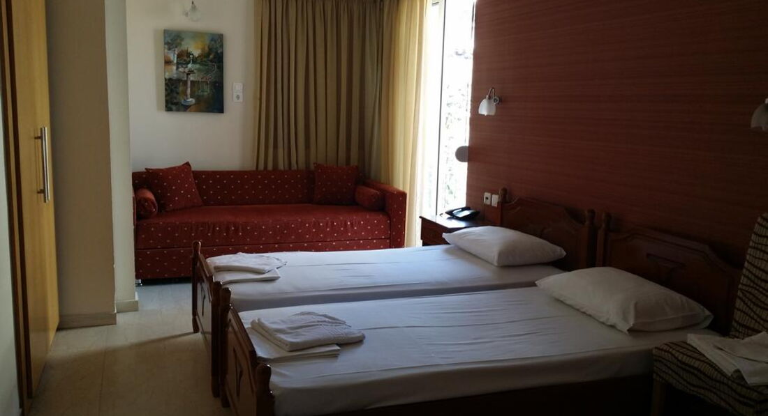 Економічний міський готель на набережній Каламати, простота стилю, інтернет. У легкій доступності є магазини, бари, кафе, таверни. Каламата – ідеальне місце для вивчення південного Пелопоннесу. Тут пишнота античної Греції відкривається у всій красі: Мані, Пілос, Спарта та Містра, середньовічні фортеці Монемвасія та вражаючі печери Діроса.