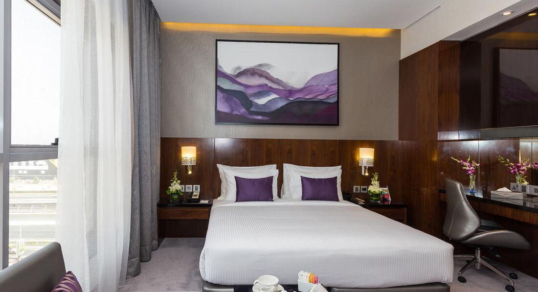 12 Executive Suite (75 м2, вітальня + спальня, вид на дорогу Sheikh Zayed, 2 ванні кімнати, ліжко king-size, макс.2+1 чол.).