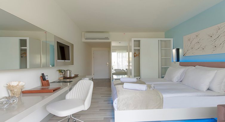 Типи номерів: • Standart, 23 кв. • Deluxe Sea View, 29 кв. • Family Gargen/Sea View, 38-45 кв.м. • Suite Sea ViewУ номері: • балкон • кондиціонер • Wi-Fi: безкоштовно • санвузол • душ • набір для кави та чаю • міні-бар • TV • телефон • сейф у номері • фен