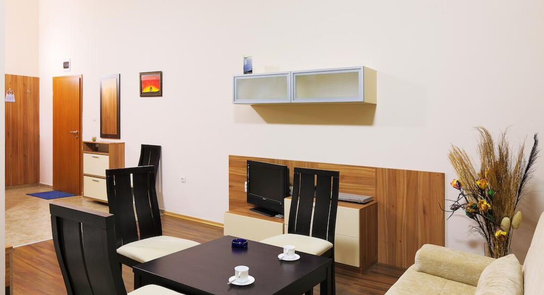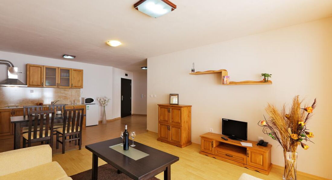 Типи номерів: standart room apartment 1 bedroom apartment 2 bedroomsУ номері: балкон опалення Wi-Fi санвузол душ мінібар: платно TV: супутникове телефон фен письмовий стіл