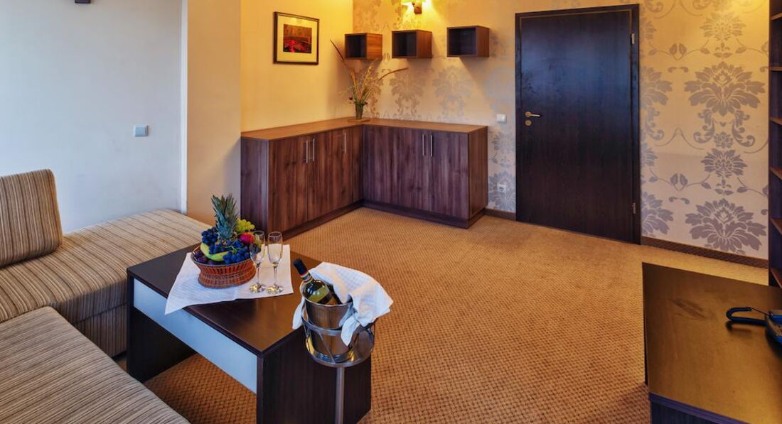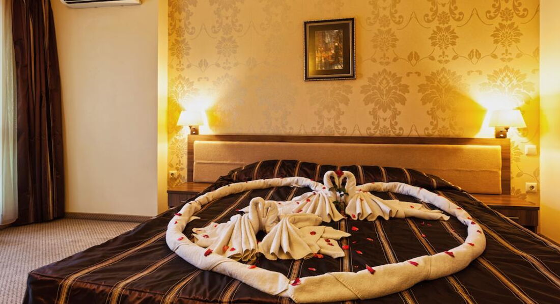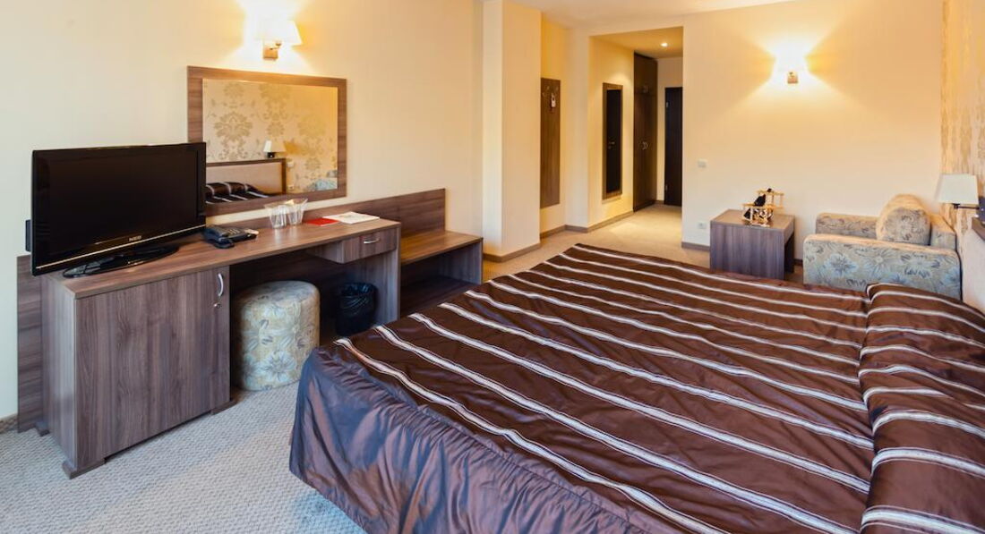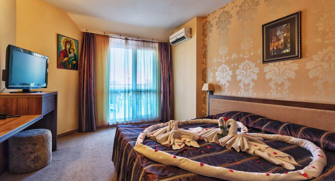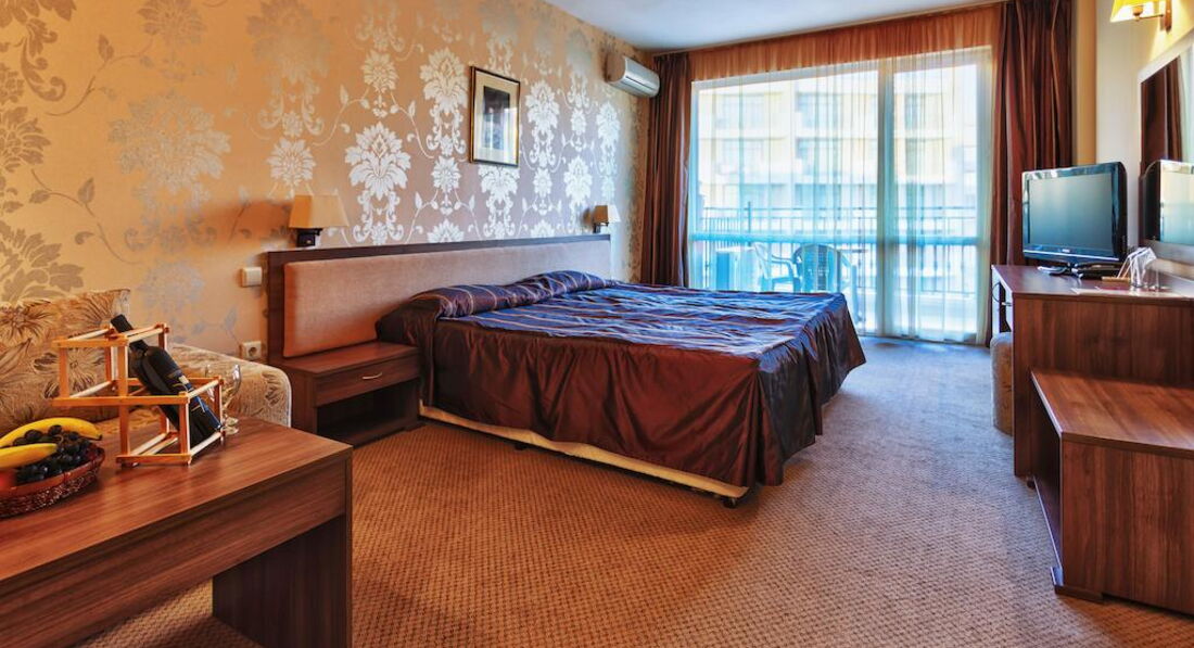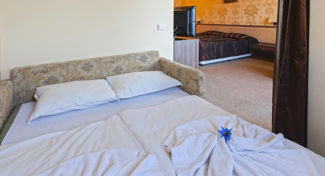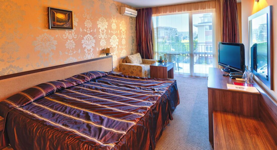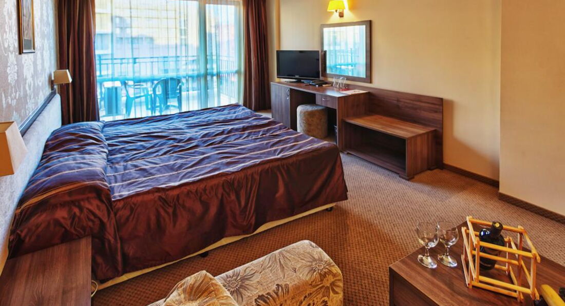 Была в этом отеле с мужем и взрослым сыном. По приезду выяснилось, что на ужин мы опаздали и никто не собирается нас кормить. С этого началось "всё включено" и сервис. Разместили быстро. Номер был очень уютный, но для часто путешествующих в Европу хочу заметить: это Болгарские 4*, а не европейские! Поэтому: никаких халатов и тапочек, каждый день мыла и шампуней, салфеток в номере или воды (я имею ввиду питьевую в бутылках) нет.