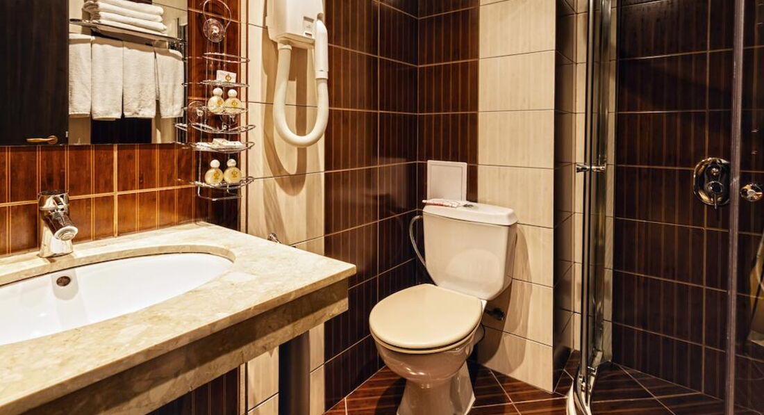 Кухня - дешевая, но некачественной пожалуй не назовешь - вполне достойно (уровень как раз 3 звезд). Санузел совмещенный, вода растекается по всей комнатке, вместо ванной (в 4-ке это должно быть стандартом) здесь будет лишь душевая кабинка.