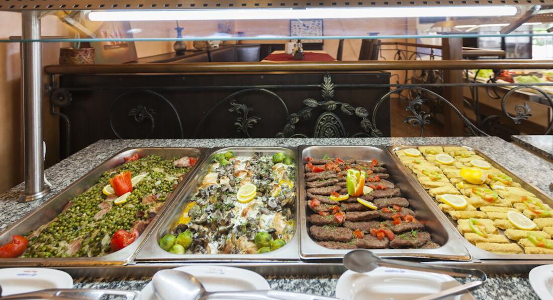 Особо хочется отметить питание отеля: вот здесь без претензий, молодцы, без особых изысков, но все всегда все свежее и вкусное, накормить ребенка 3-х лет труда не составляло. Питались в основном только в отеле и всегда были сыты и довольны, для нас важно было наличие каш на завтрак и супов на обед. Каши, конечно, не совсем привычные, но дети ели с удовольствием. Два вида супов, причем и на ужин тоже. Очень вкусные и не только овощные пюре, но и с картошечкой, и лапшой, как мы привыкли. На обед и ужин: горячие блюда из говядины, курицы, свинины, рыба, разные виды гарнира, салаты из свежих овощей, сыр, фрукты, вкусные апельсины, бананы и арбуз, пироженки, булочки к чаю, четыре вида мороженого. В целом, питание полноценное, напитки стандартные, сок-юпи, кофе из аппарата, чай черный и травяной, из спиртного пробовали только сухое белое вино, не понравилось, больше не экспериментировали. Посуда в ресторане попадалась частенько непромытая, тарелки и кружки со сколами и трещинами, скатерти на столах в пятнах, их вместо того, чтобы стирать, просто переворачивали другой стороной. Единственная проблема это - питьевая вода, она, к сожалению, не понятно, почему платная, найти ее можно в номере в мини баре, 1 бут. 0,5 л – 1,5 лев, можно попить в ресторане из автомата, во время работы ресторана, в лоби- баре. Почему бы не выставлять воду в кулерах в бутылках, раз уж отель работает по системе "Всё включено" - непонятно. В итоге воду мы покупали в супермаркете.