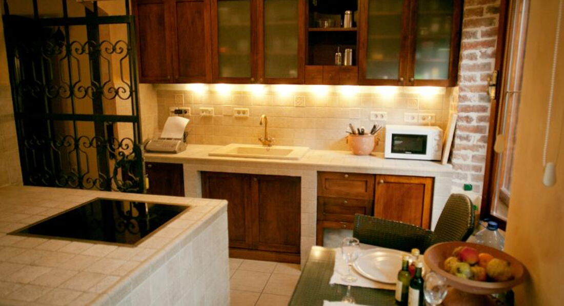 Харчування: загальна кухня, яка містить: посуд та кухонні прилади, духовку, холодильник, морозильну камеру, плитку для приготування їжі, мікрохвильову піч, апарат для кави.
