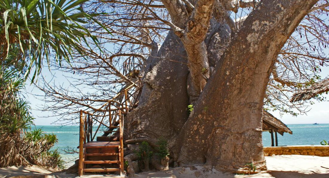 Номери з прямим доступом до пляжу розташовані навколо 900-річного баобаба. Їхні ванні кімнати відкриті і два люкси мають прямий доступ до пляжу. Приватна тераса з гамаком – приємна особливість, яка пропонує необмежений час прийняття сонячних ванн. Баобаб Suites також відомі як номер для наречених. Номер оснащений великим двоспальним ліжком.