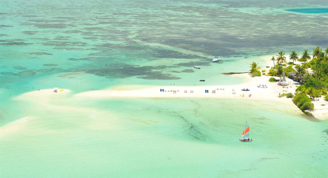 Пляжи на этом острове везде. Со стороны пирса (справа и слева), но заход в воду не очень комфортный (есть старые кораллы и попадаются камни), заход плавный – глубины нет, практически лагуна острова. Чистый песок только на косе в левой стороне острова. Есть приливы и отливы. Пляж со стороны океана (восточная часть острова), мне показалось, вообще не пригоден для плавания, только загорать, хотя там очень красивый вид (на горизонте большая океанская волна разбивается об риф).